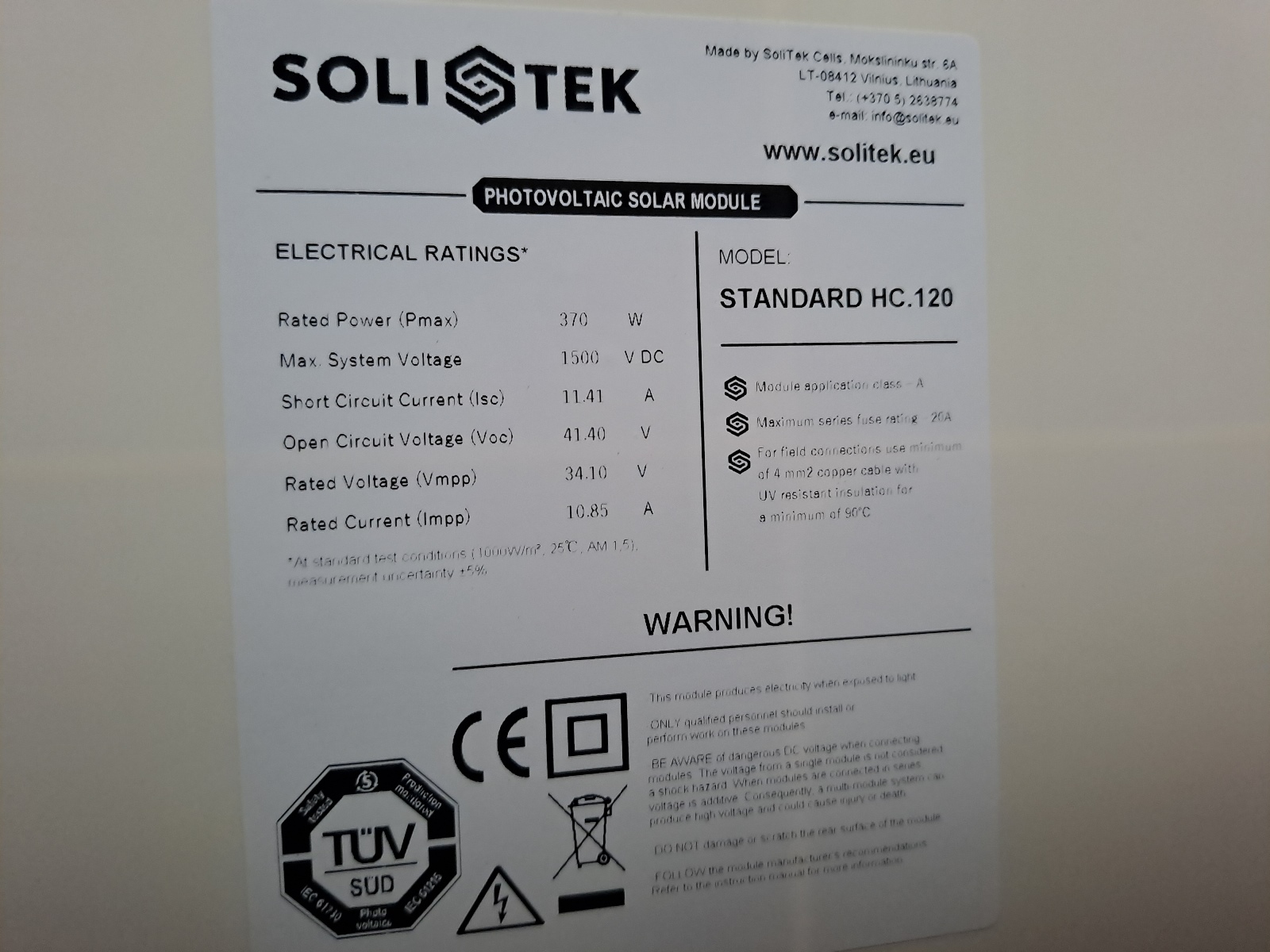BxH ca. 105x177, 370 W, Solistec Standard HC120