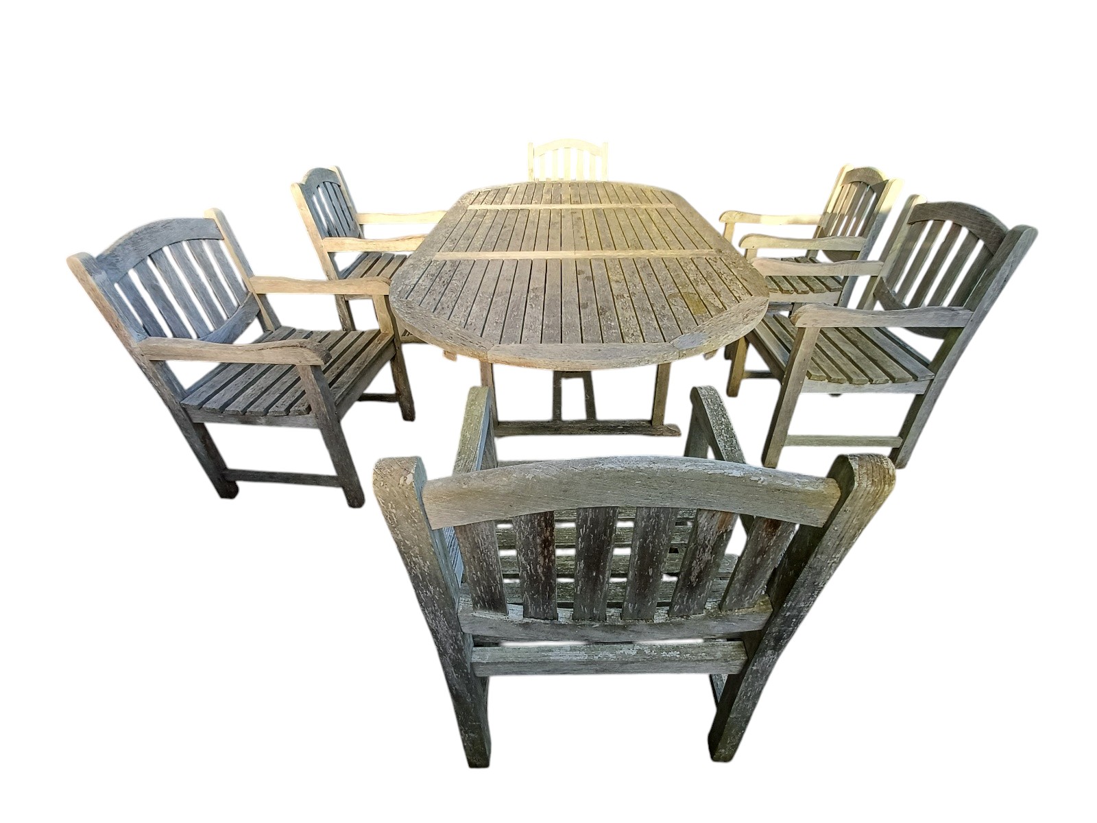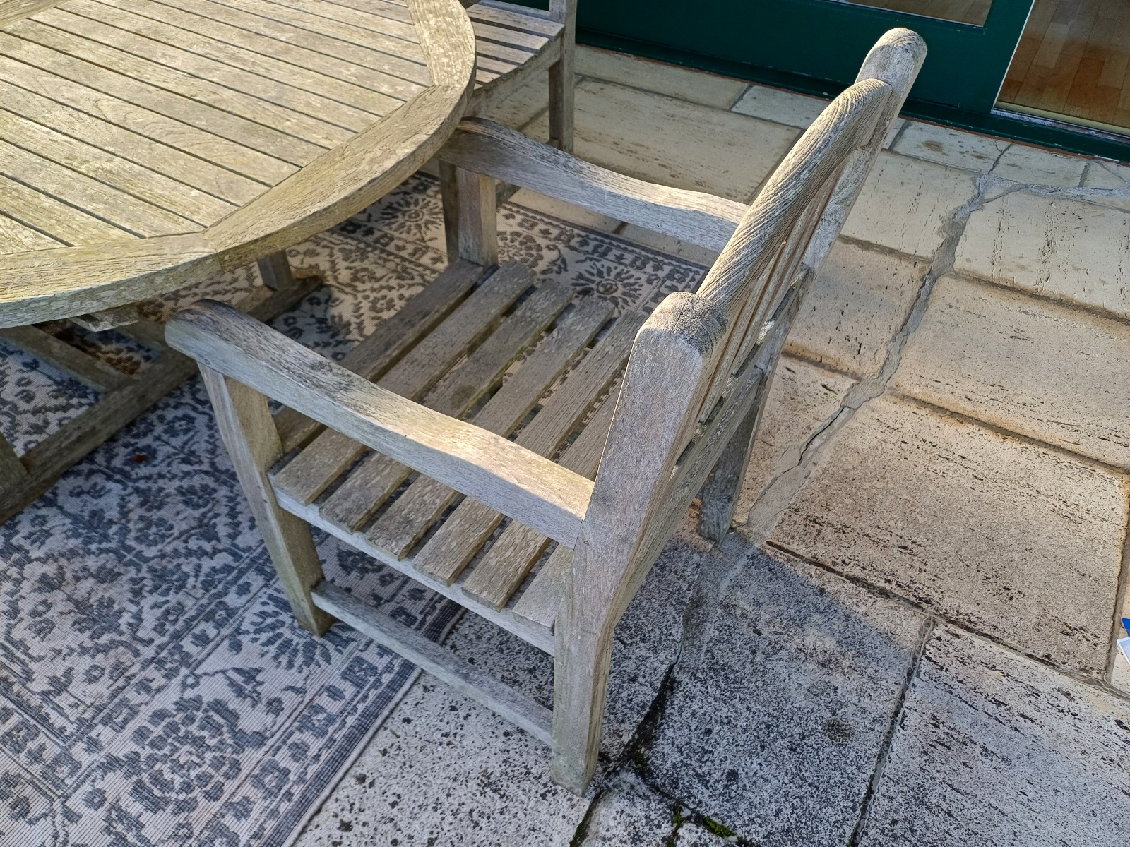 Holz, inkl. 6 Stühlen, Tischplatte, ca. 240x120 cm Witterungsspuren vorhanden, inkl. Teppich, siehe Fotos