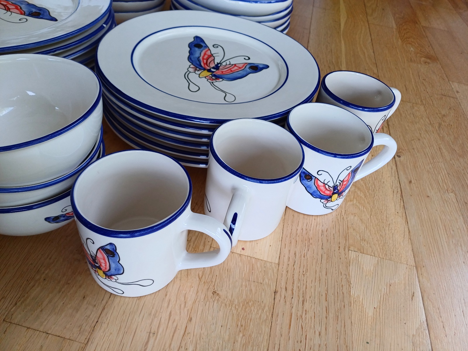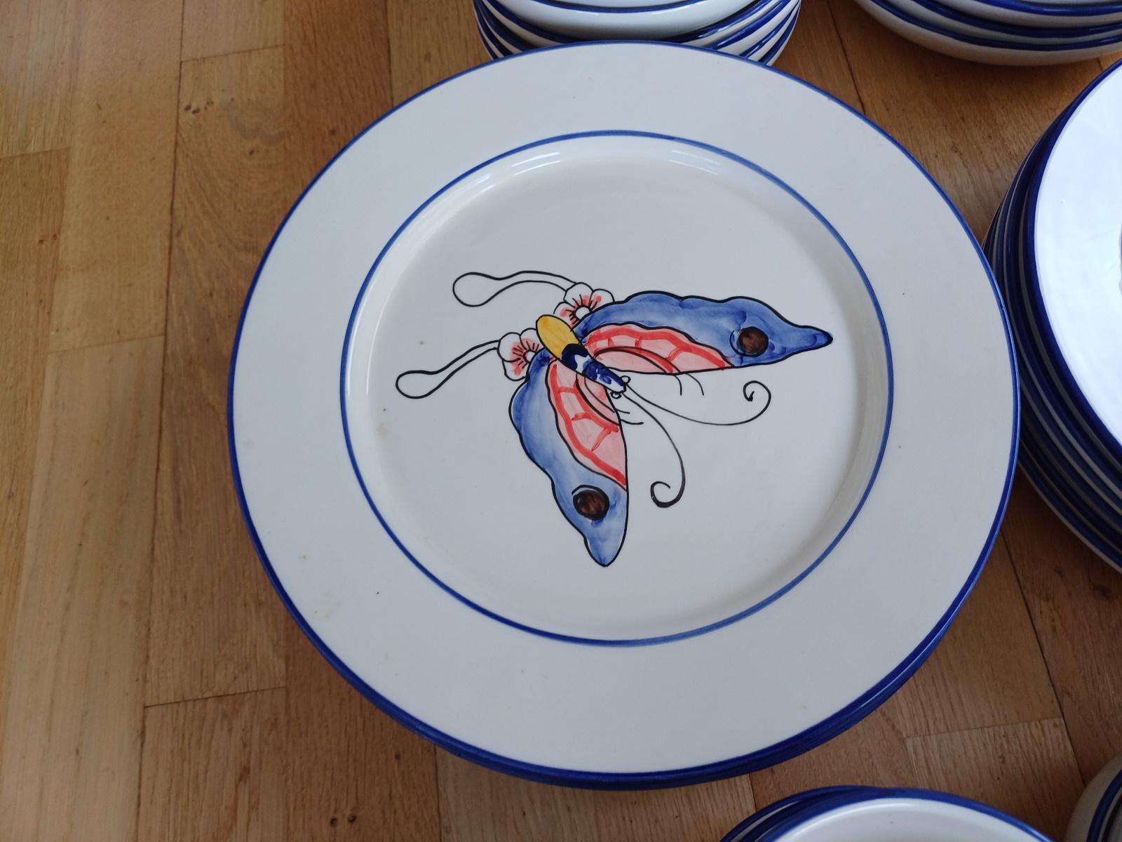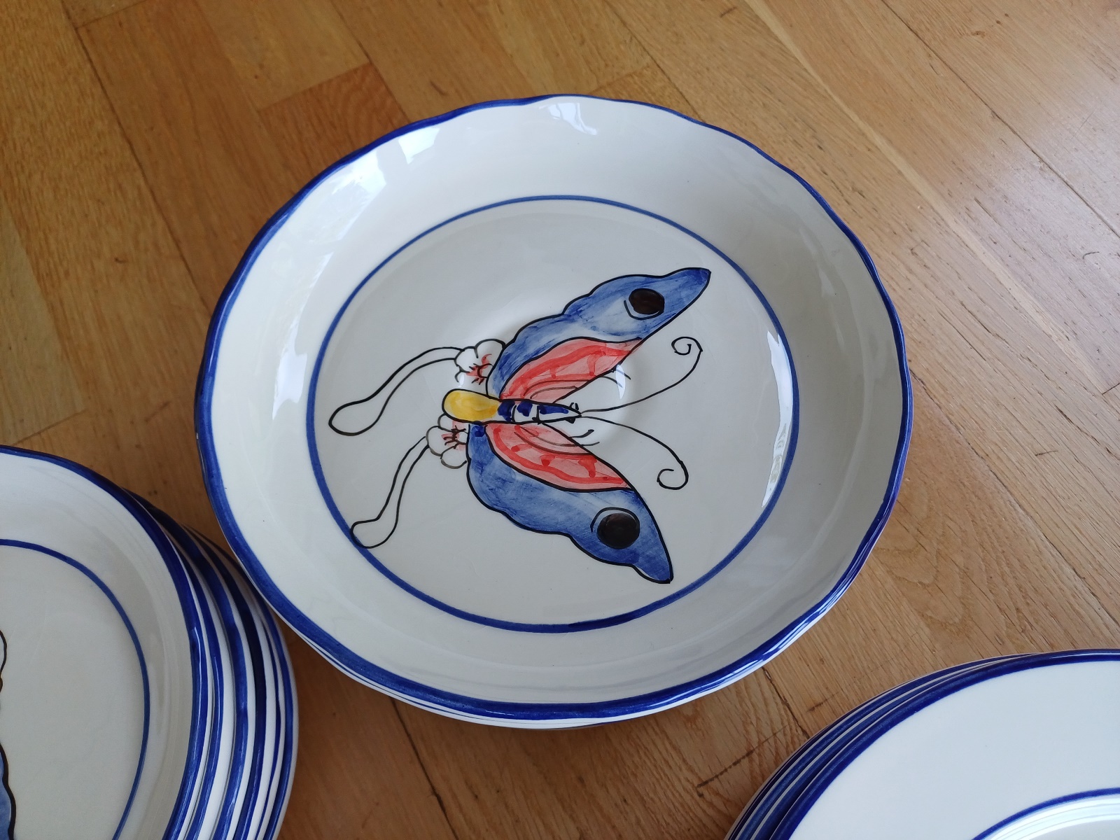 handbemalen, je 6 Teller, 6 Salatschüsseln und 4 Tassen, teilweise leicht ausgeschartet, siehe Fotos