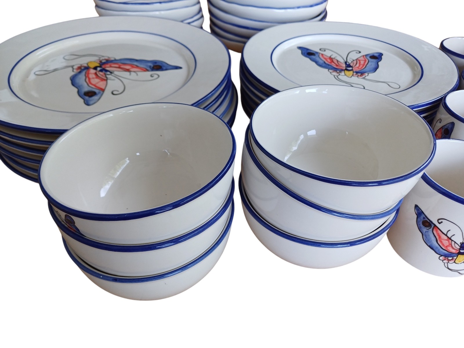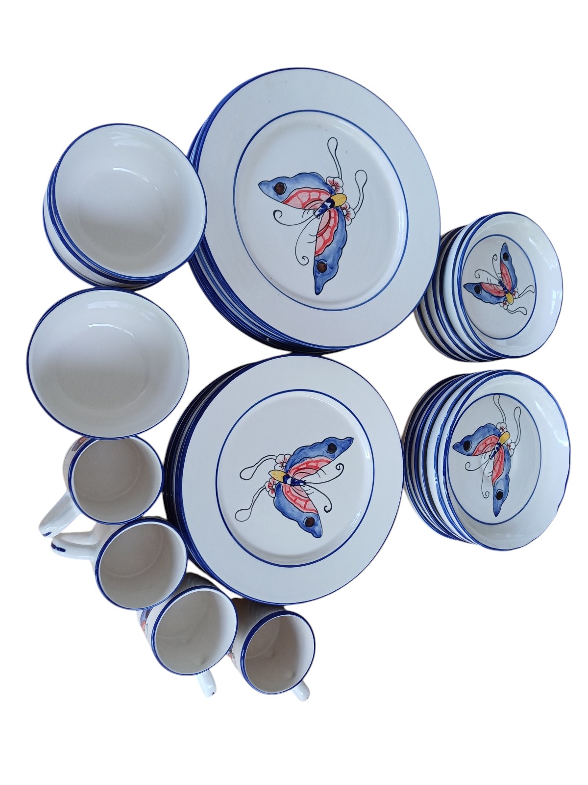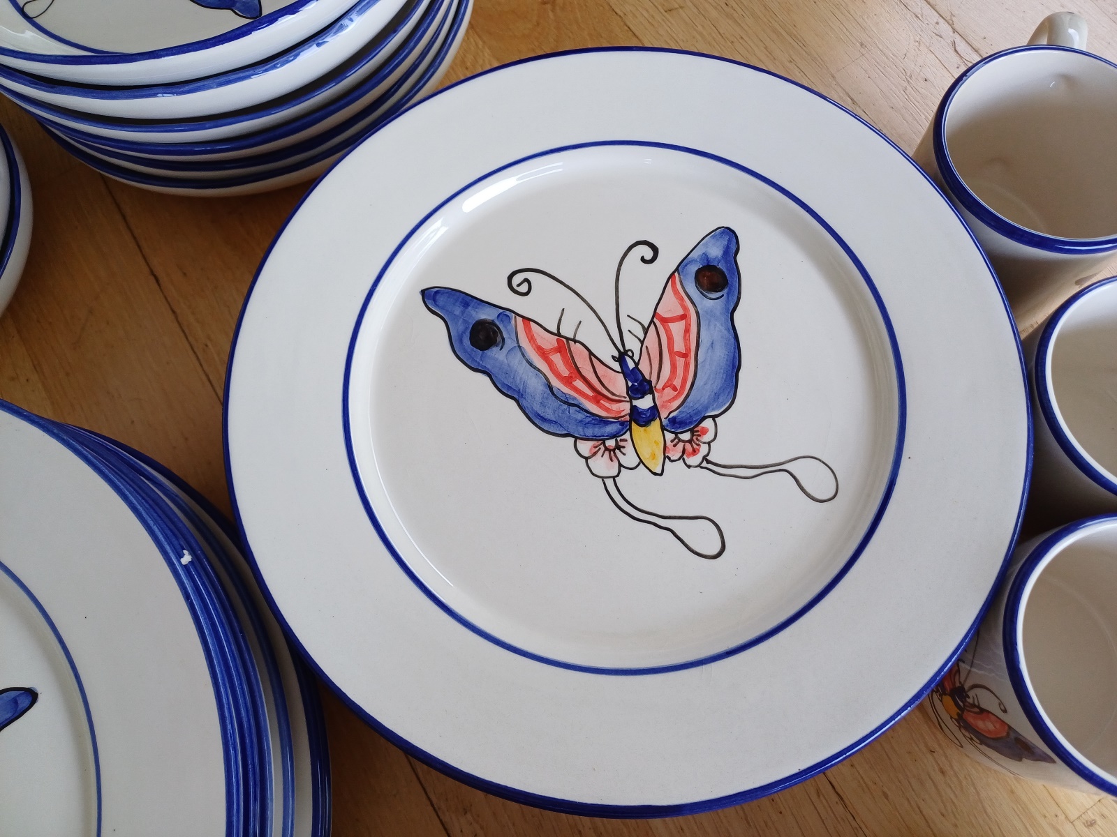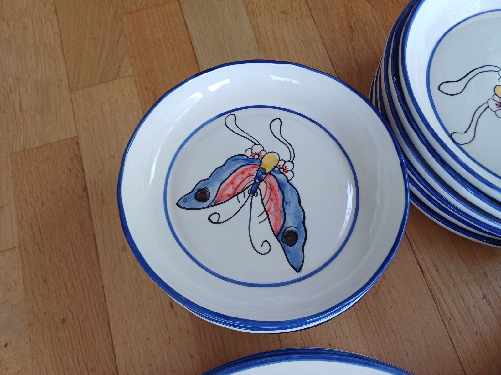 handbemalen, je 6 Teller, 6 Salatschüsseln und 4 Tassen, teilweise leicht ausgeschartet, siehe Fotos