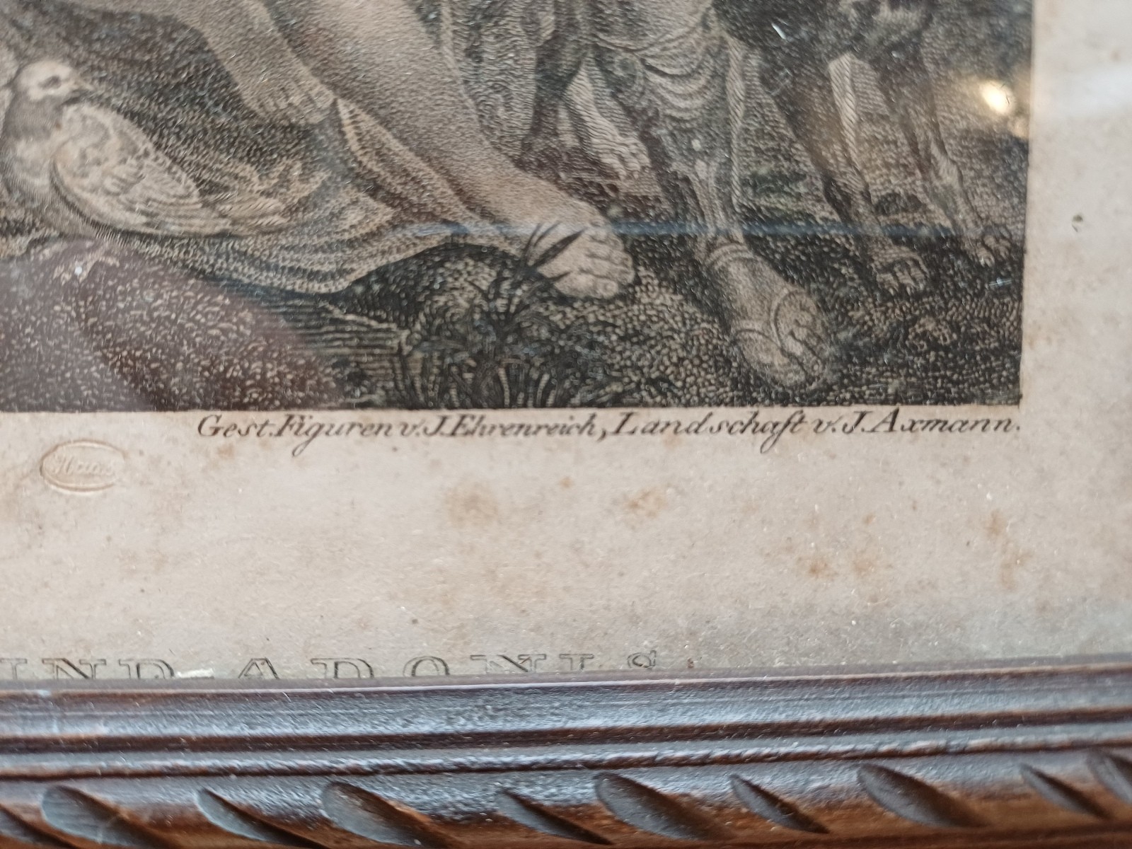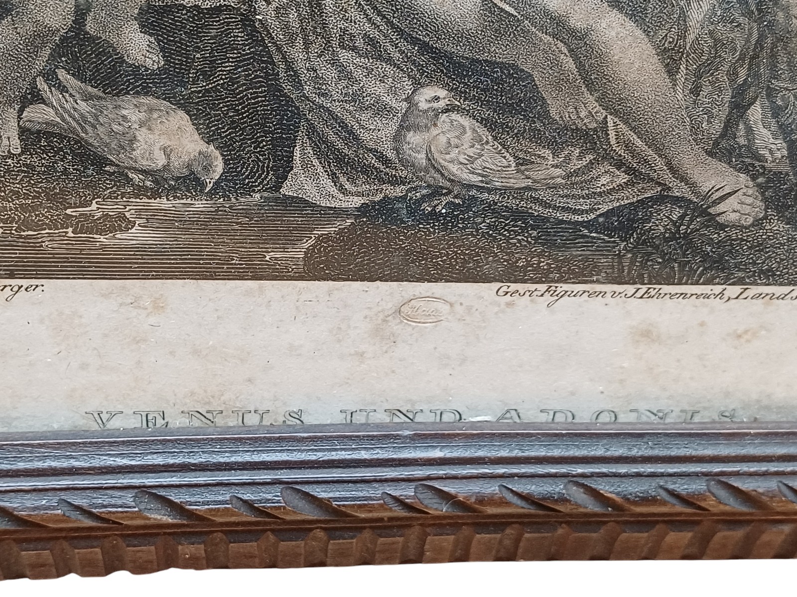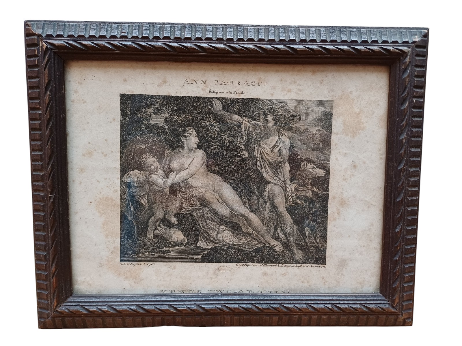 Venus und Adonis, gerahmt, verglast, monogrammiert, ca. 26x21 cm