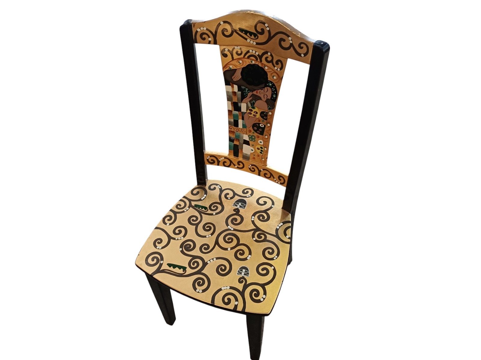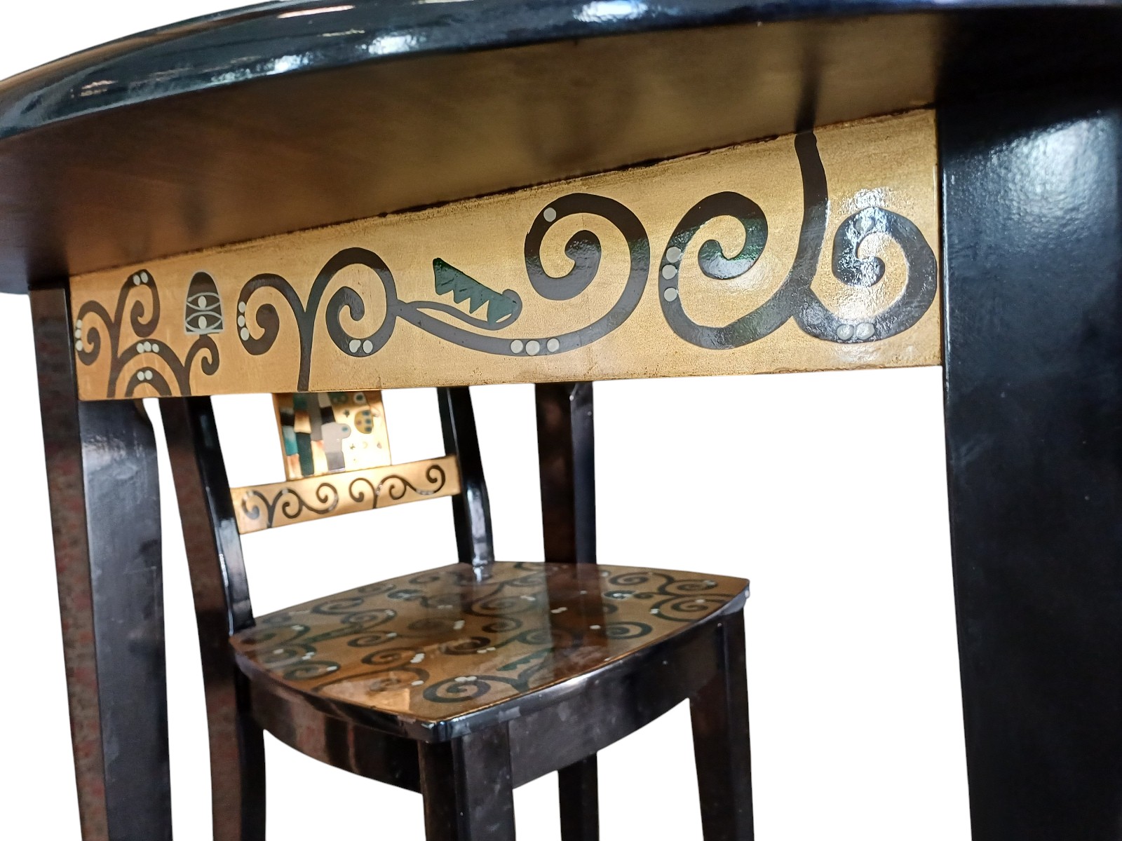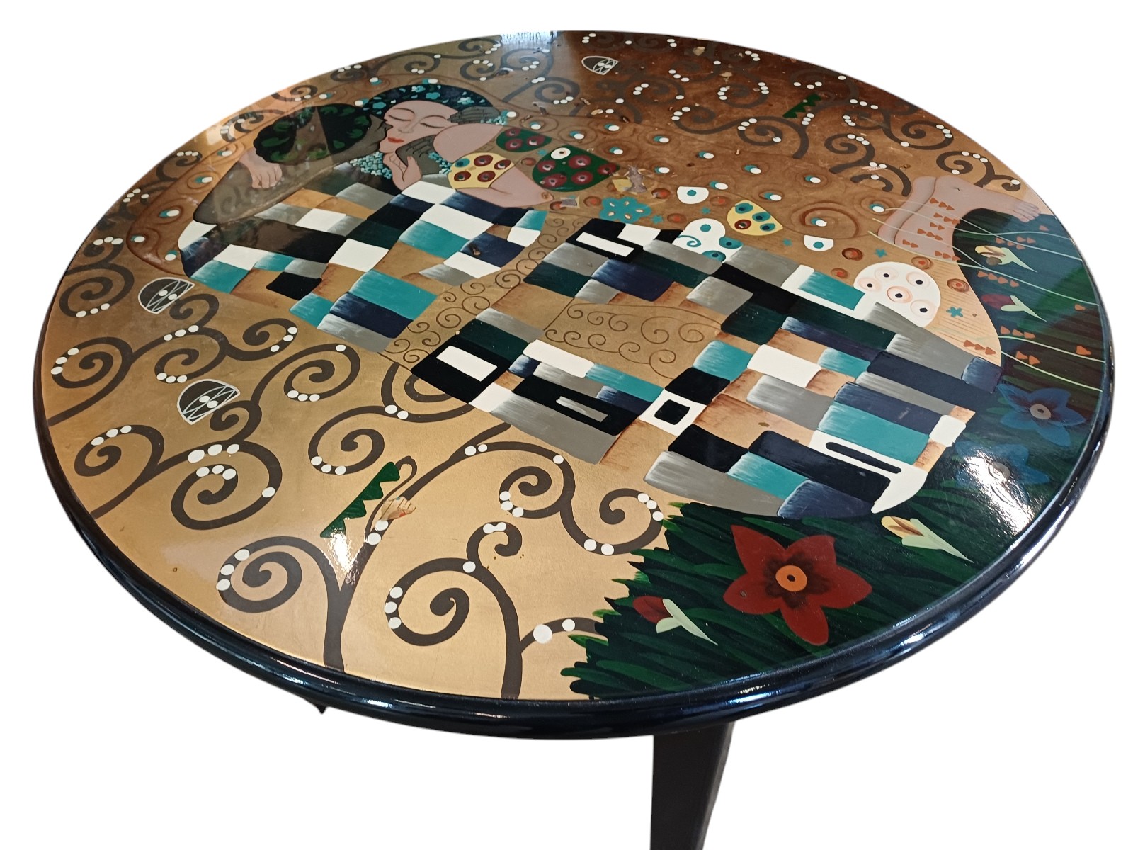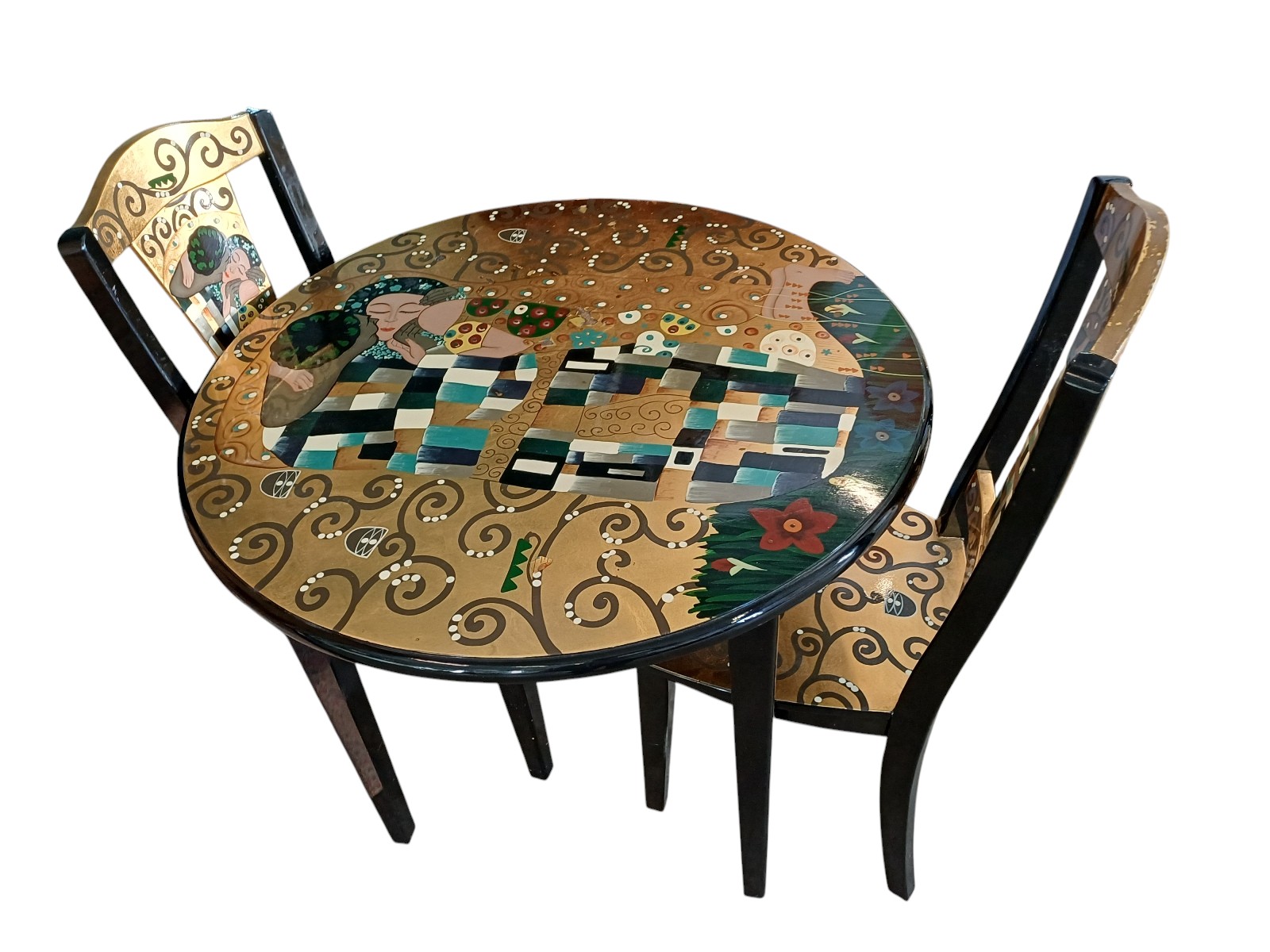 bedruckt mit den Szenen von Gustav Klimts der Kuss, mit 2 Stühlen, Tisch Durchmesser ca. 90 cm