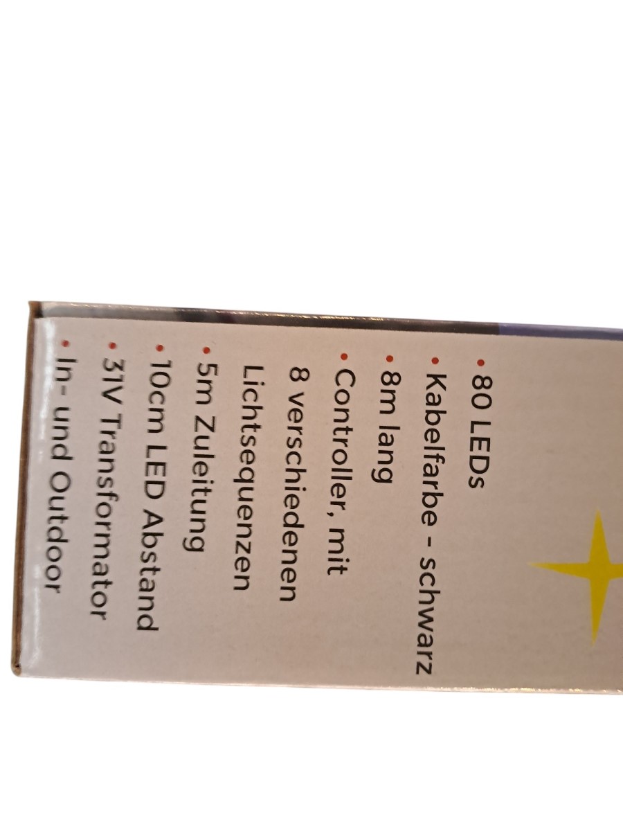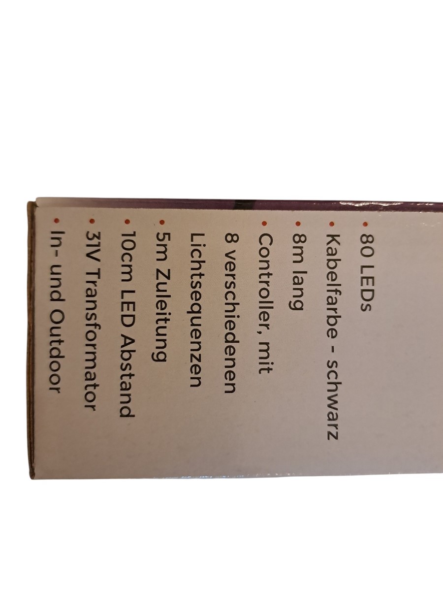 80 Leds, warmweiß, indoor und outdoor, Controller mit verschiedenen Lichtsequenzen, Neupreis 17,99 Euro, neu, OVP