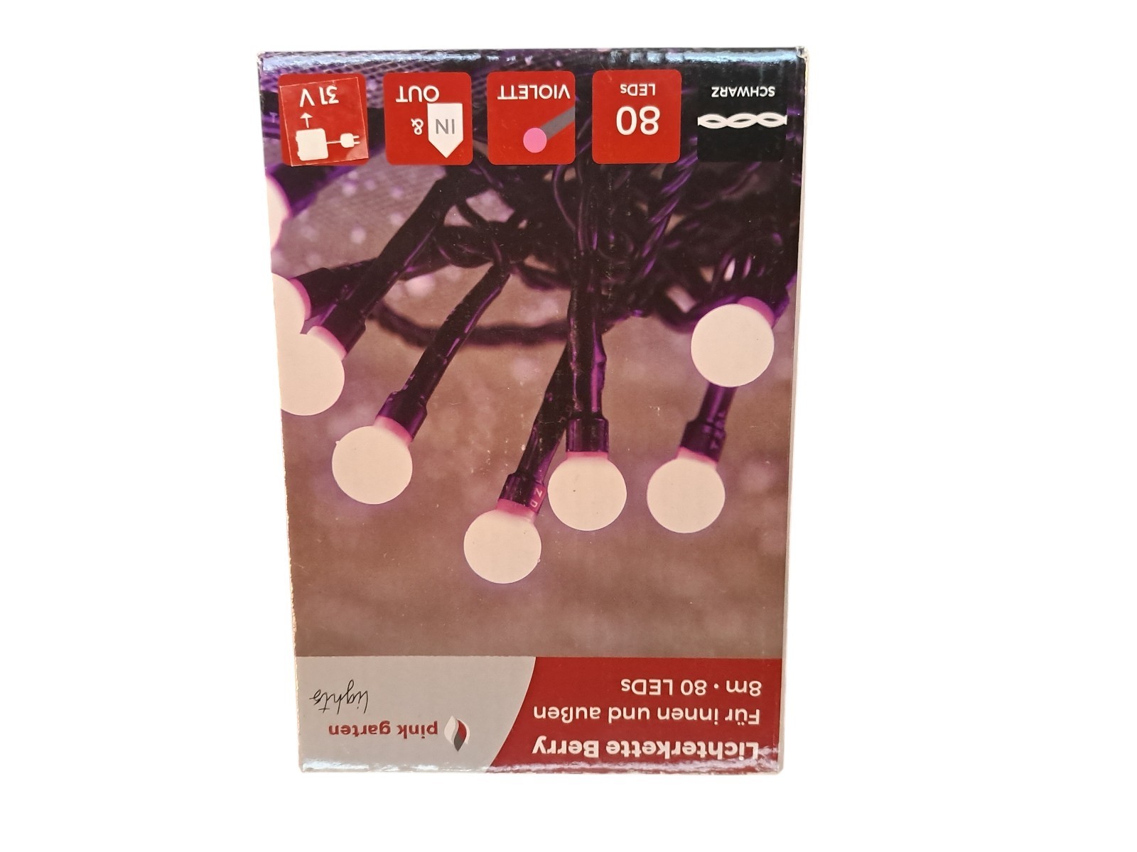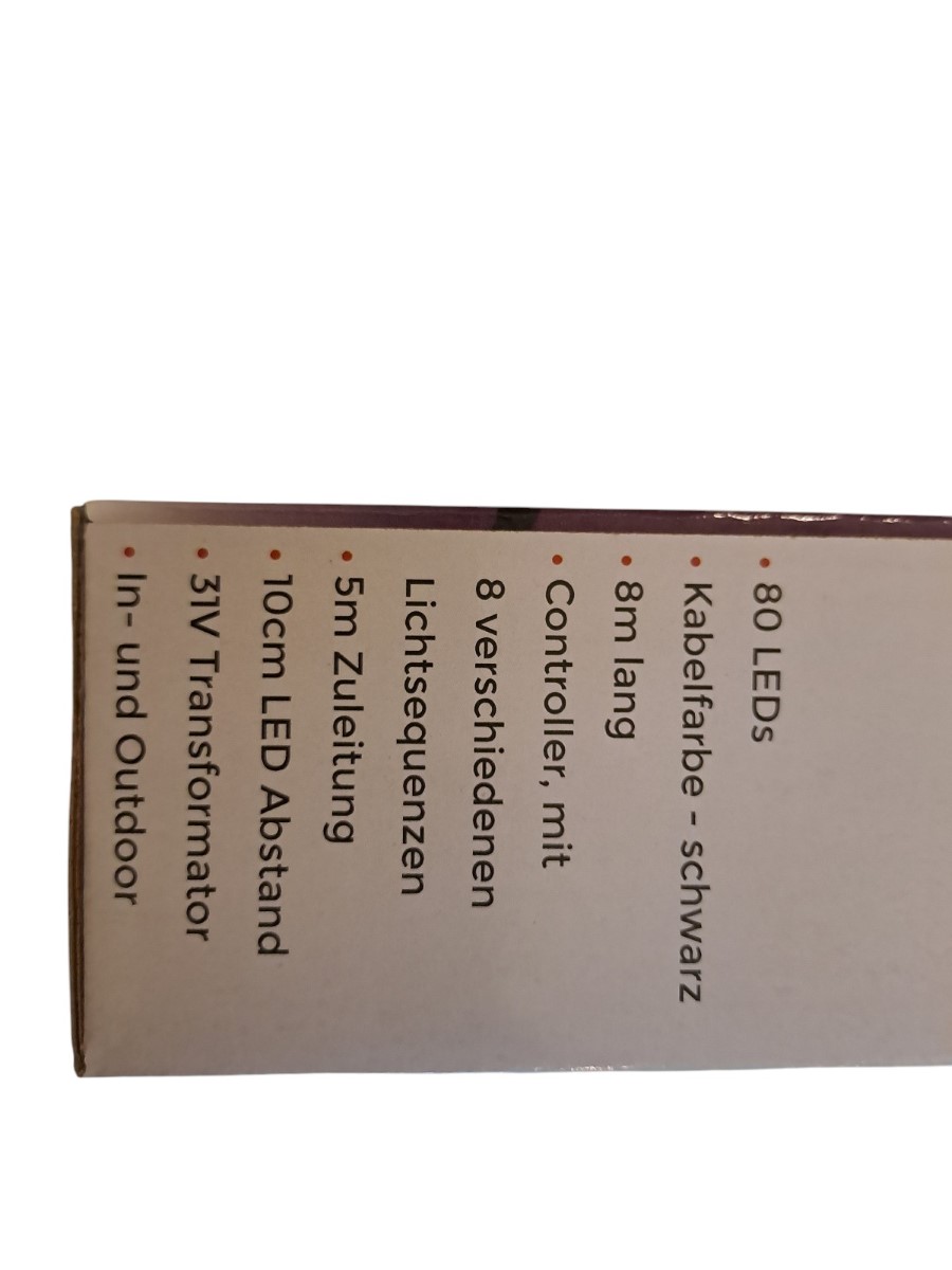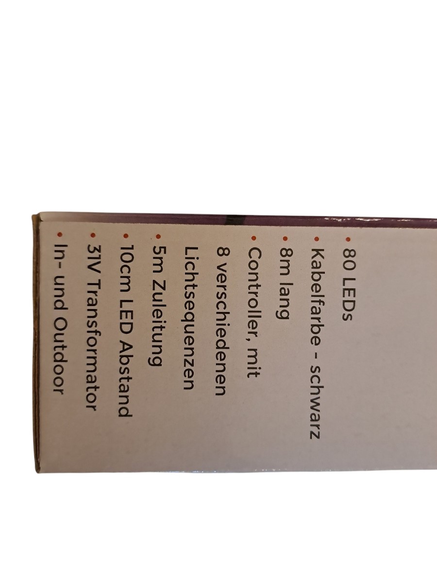 80 Leds, violett, indoor und outdoor, Controller mit verschiedenen Lichtsequenzen, Neupreis 19,99 Euro, neu, OVP