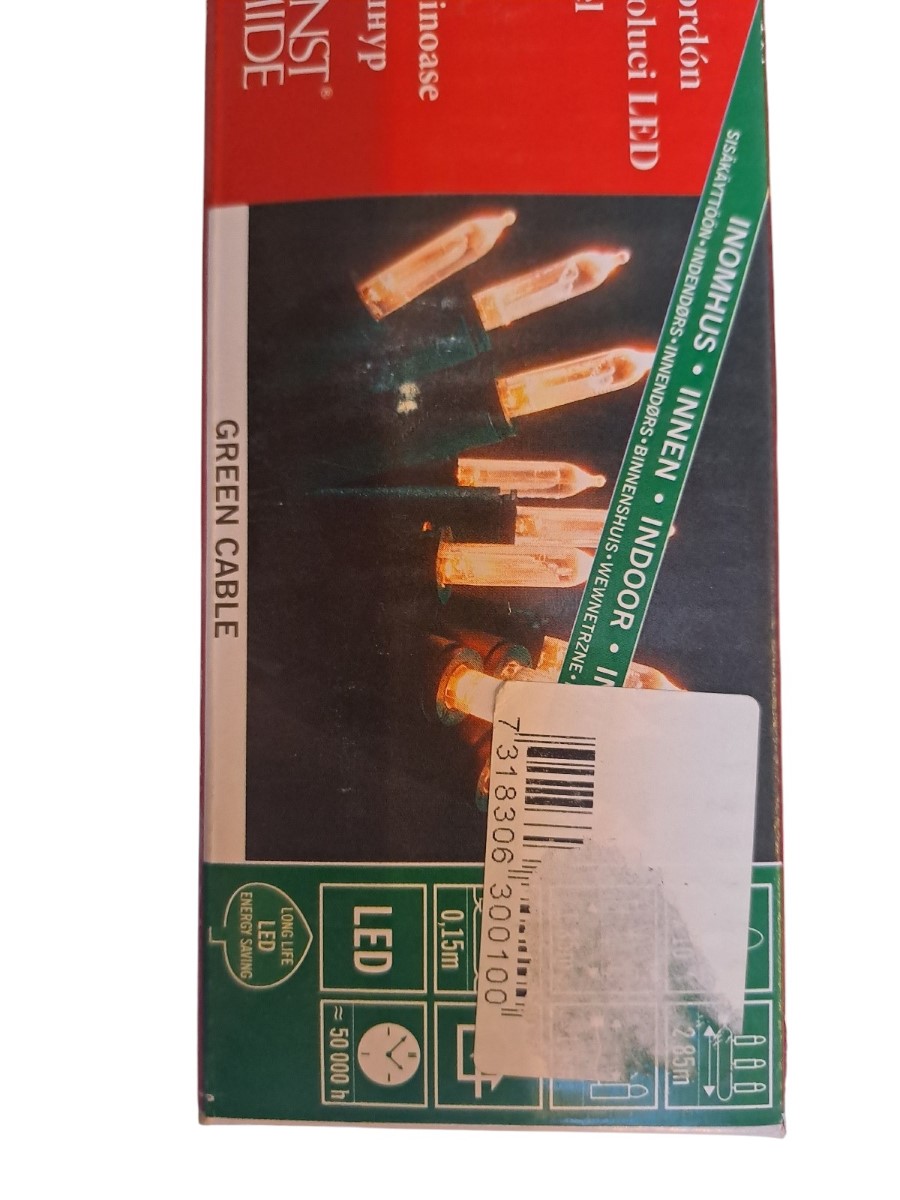 je 10 Leds, warmweiß, grünes Kabel, Neupreis gesamt 54,95 Euro, neu, OVP
