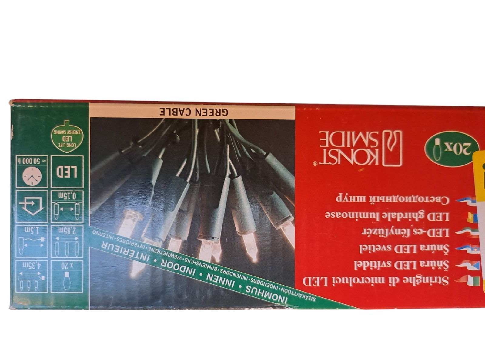 je 20 Leds, warmweiß, grünes Kabel, Neupreis gesamt 104,93 Euro, neu, OVP