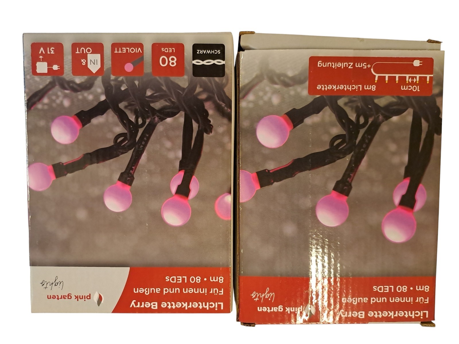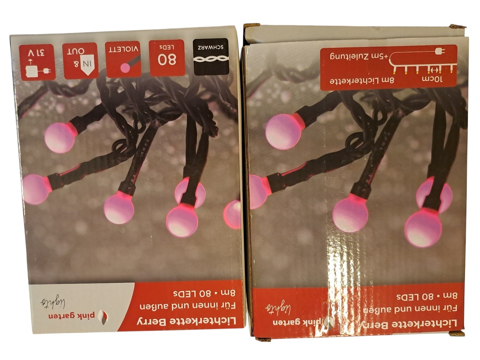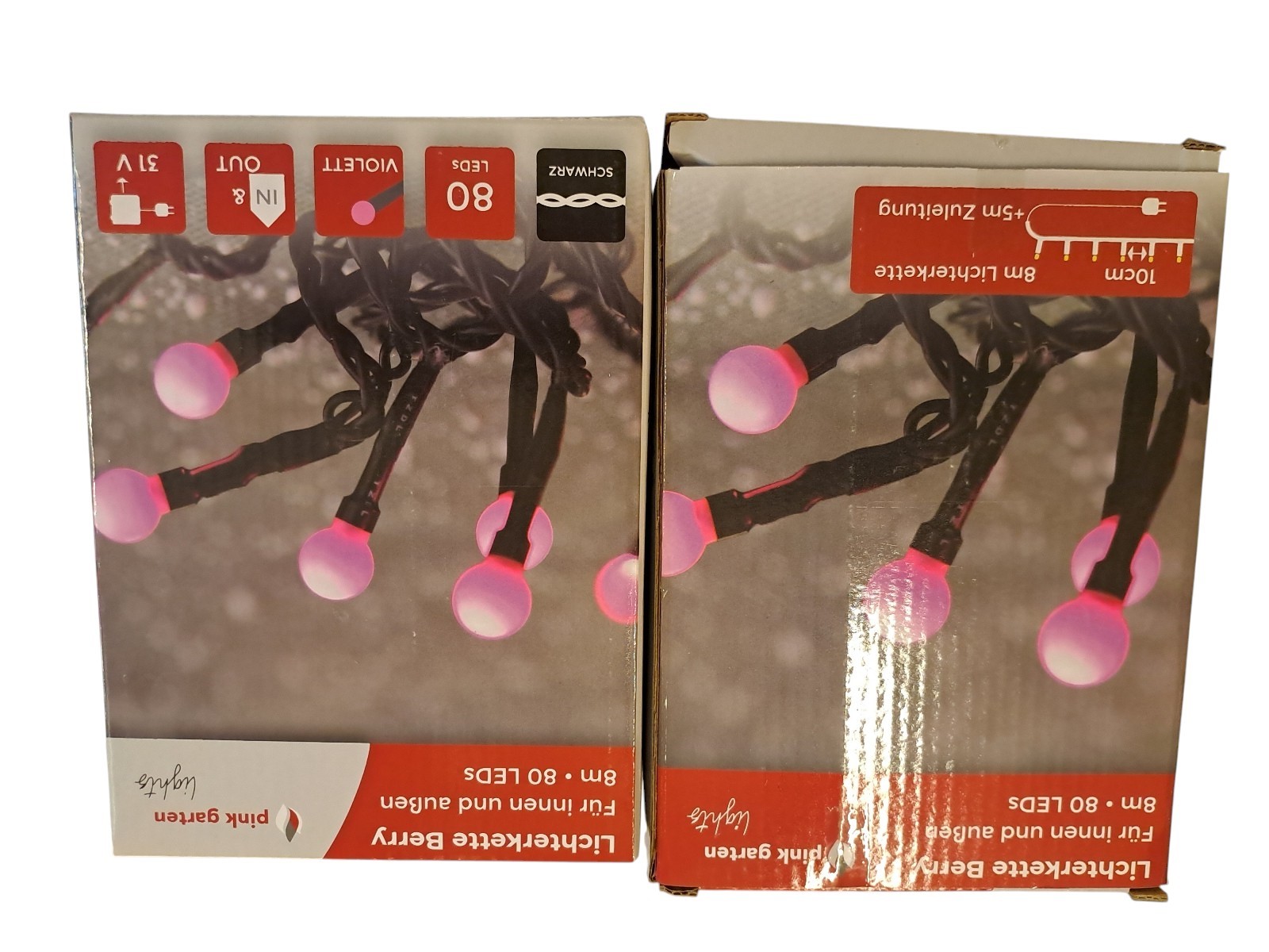 violett, je 80 Leds, mit 8 verschiedenen Lichtsequenzen und digitalem Timer, indoor und outdoor, Neupreis gesamt 90 Euro
