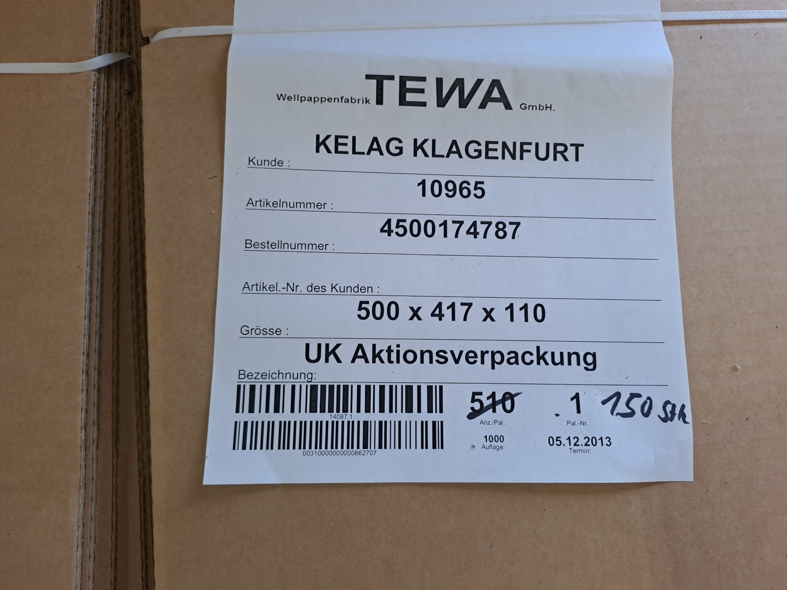 150 Stück | Kartons Marke: Tewa
