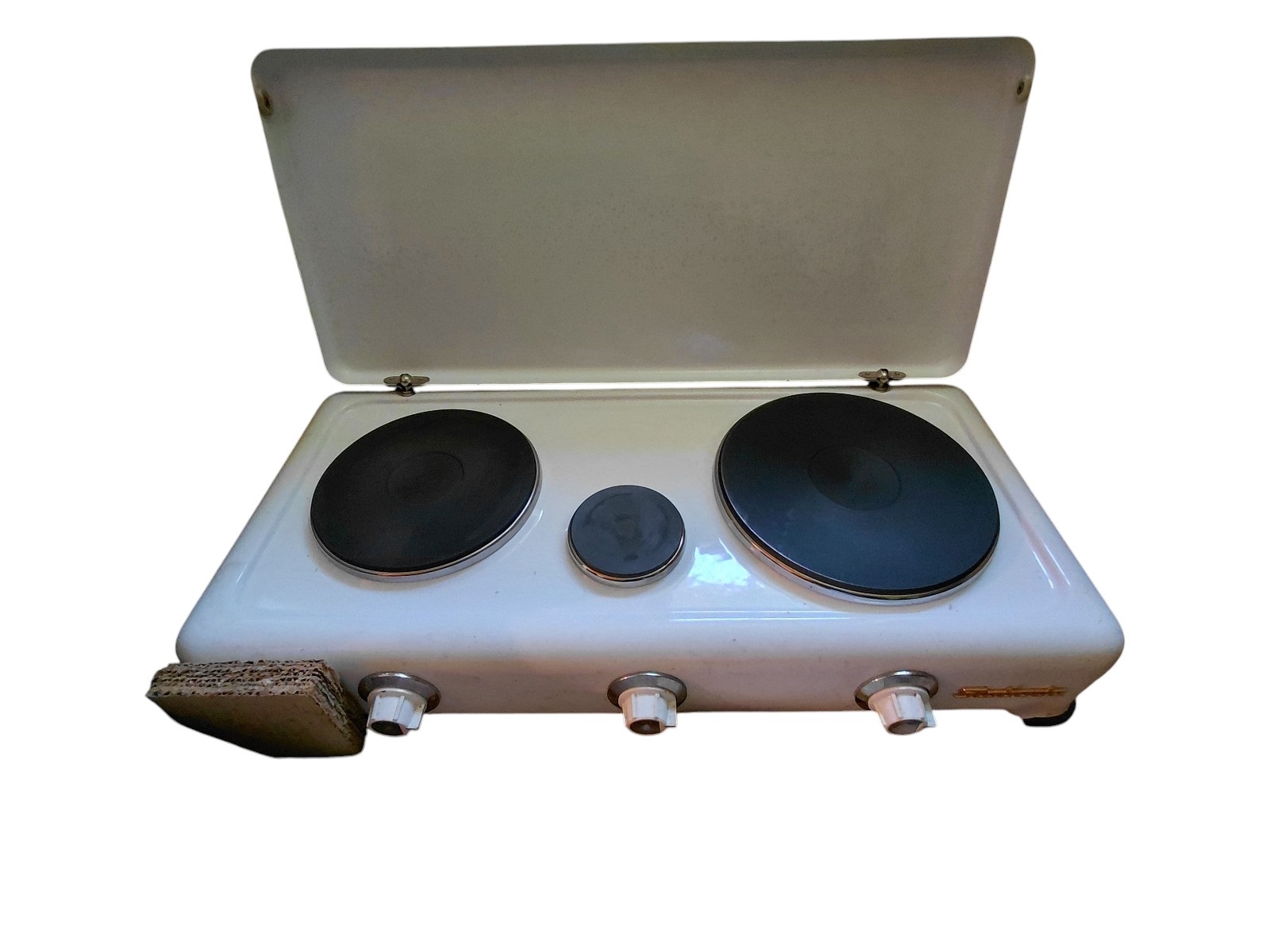 neuwertig, unbenützt, mit 3 Kochplatten, aus den 1960er Jahren