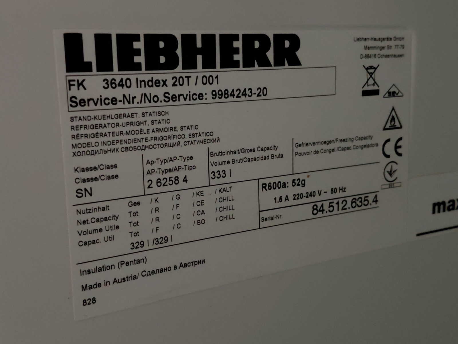 1 Stück | Gastro Kühlschrank KÜ Marke: Liebherr