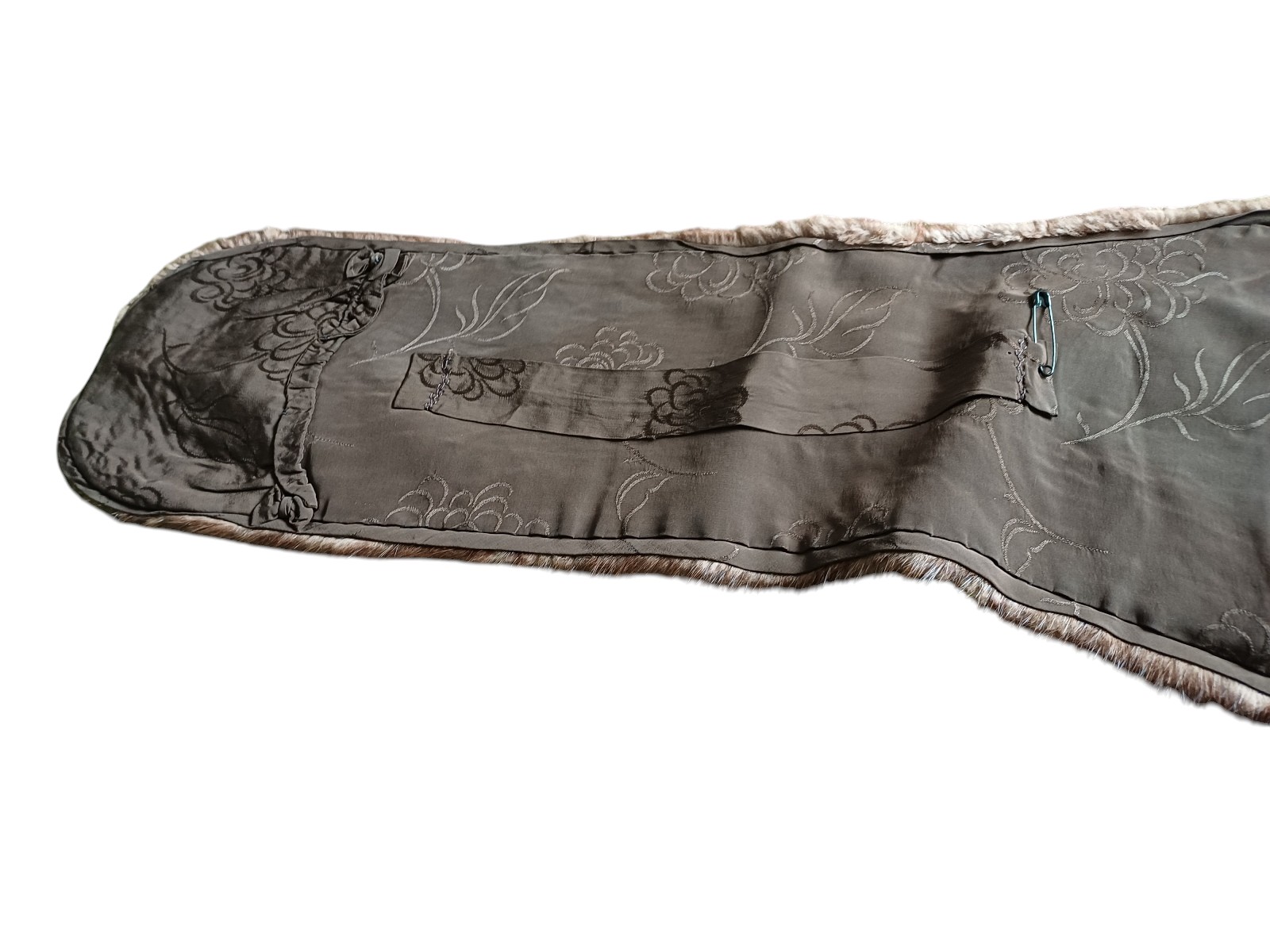 Pelzdecke Waschbär, ca. 190x190 cm, verschiedene Flecken in Brauntönen, hinten mittelbrauner Stoff, Slupinski