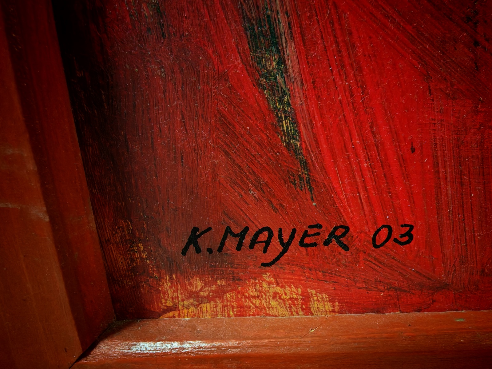 Acryl auf Platte, muß in Rahmen erneut befestigt werden, ca. 48×81 cm, signiert K.Mayer