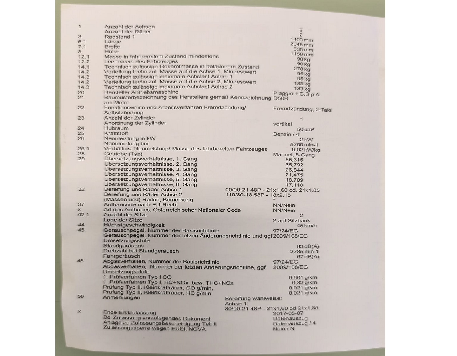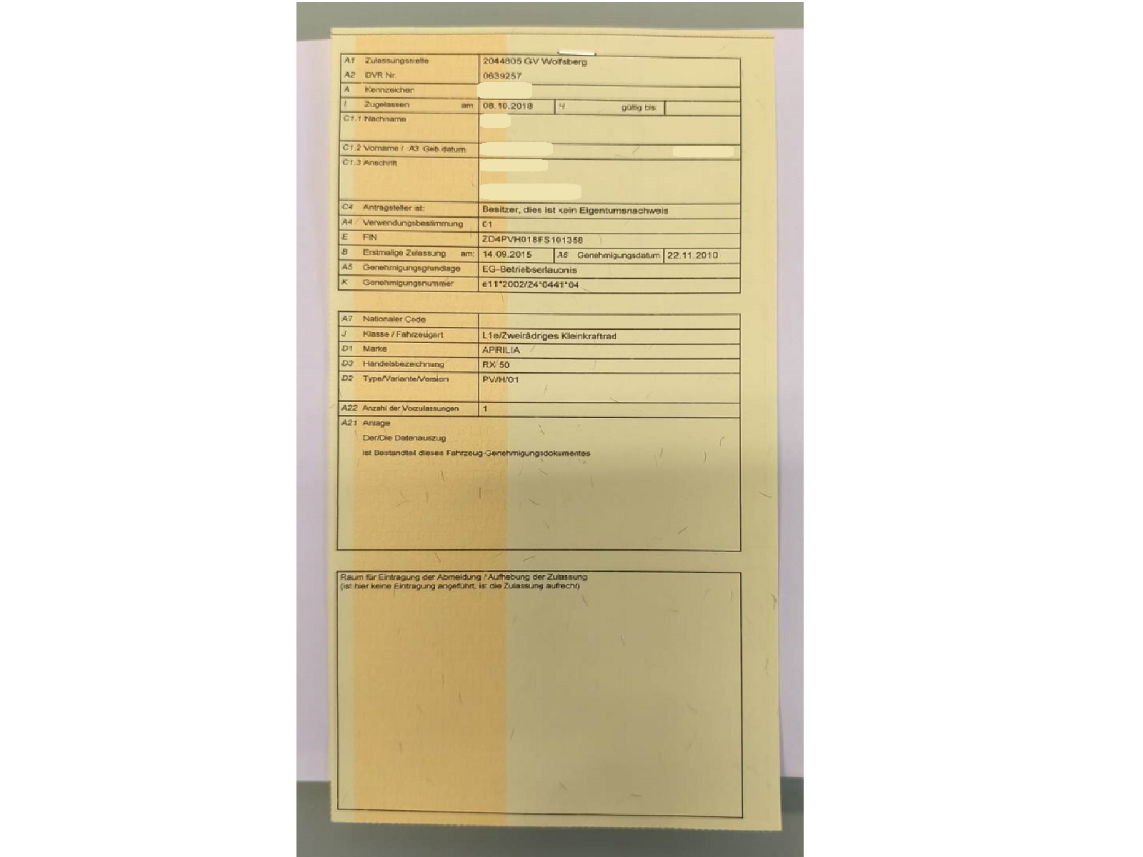 zugelassen am 8.10.2018, Modell: Aprilia RX50, Batterie muss gegebenenfalls ersetzt werden, siehe Papiere