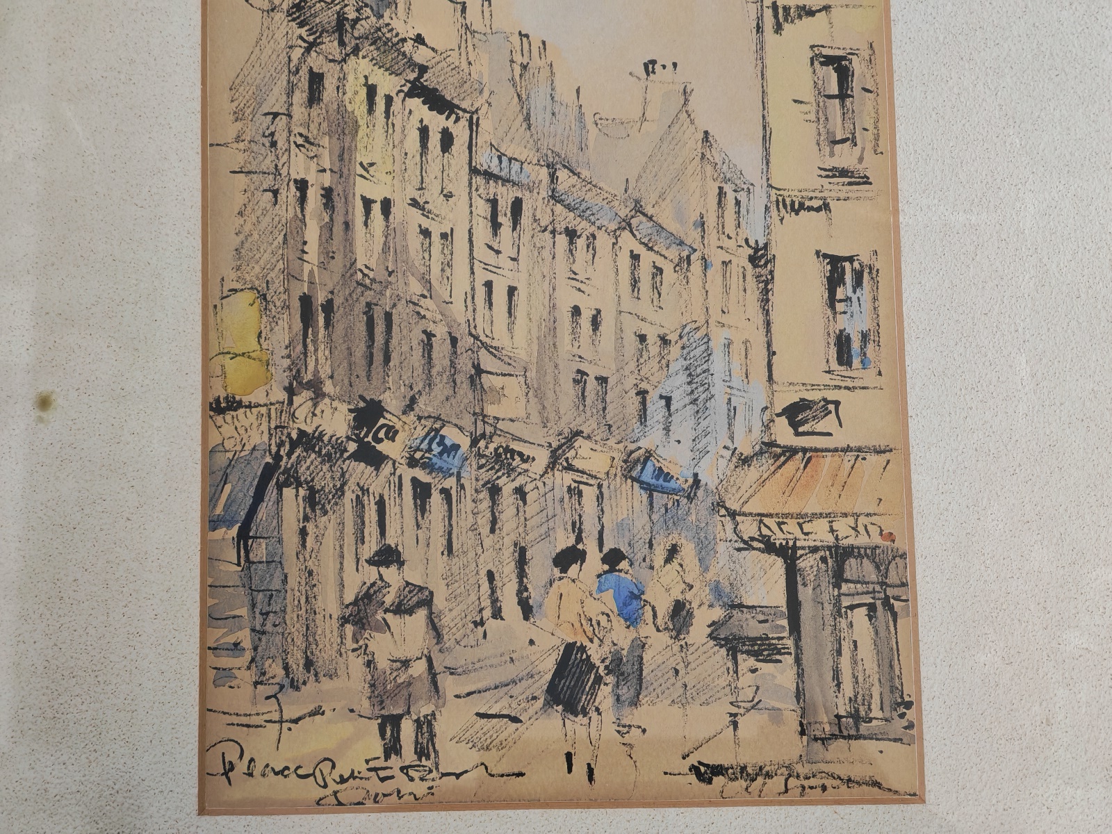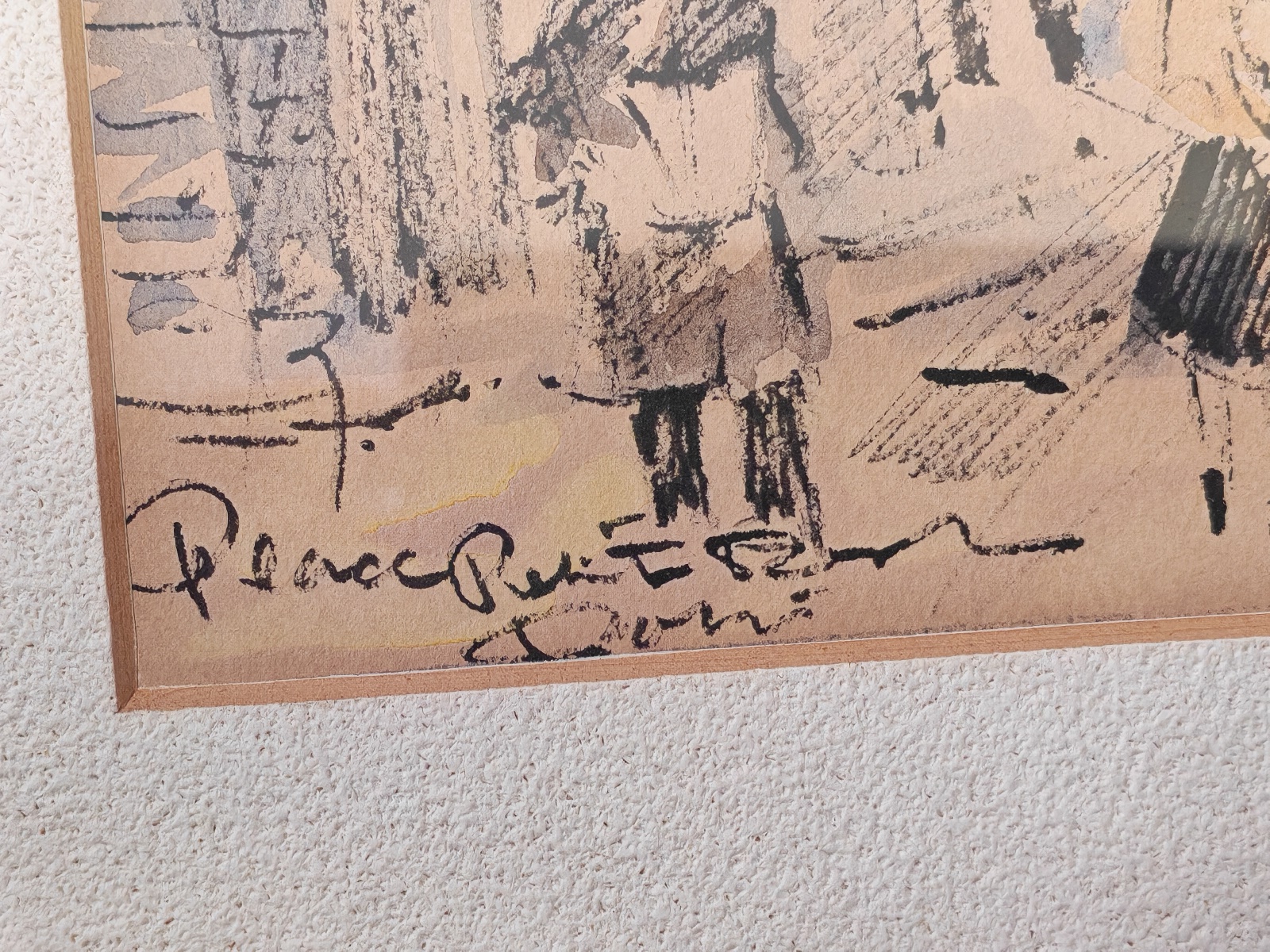 gerahmt, verglast, ca. 29×37 cm, Bildausschnitt ca. 16×21 cm, signiert