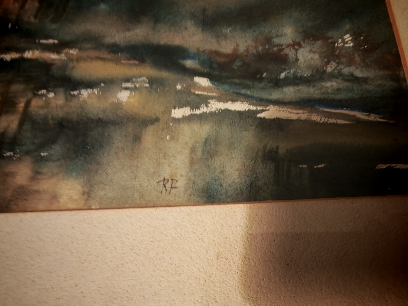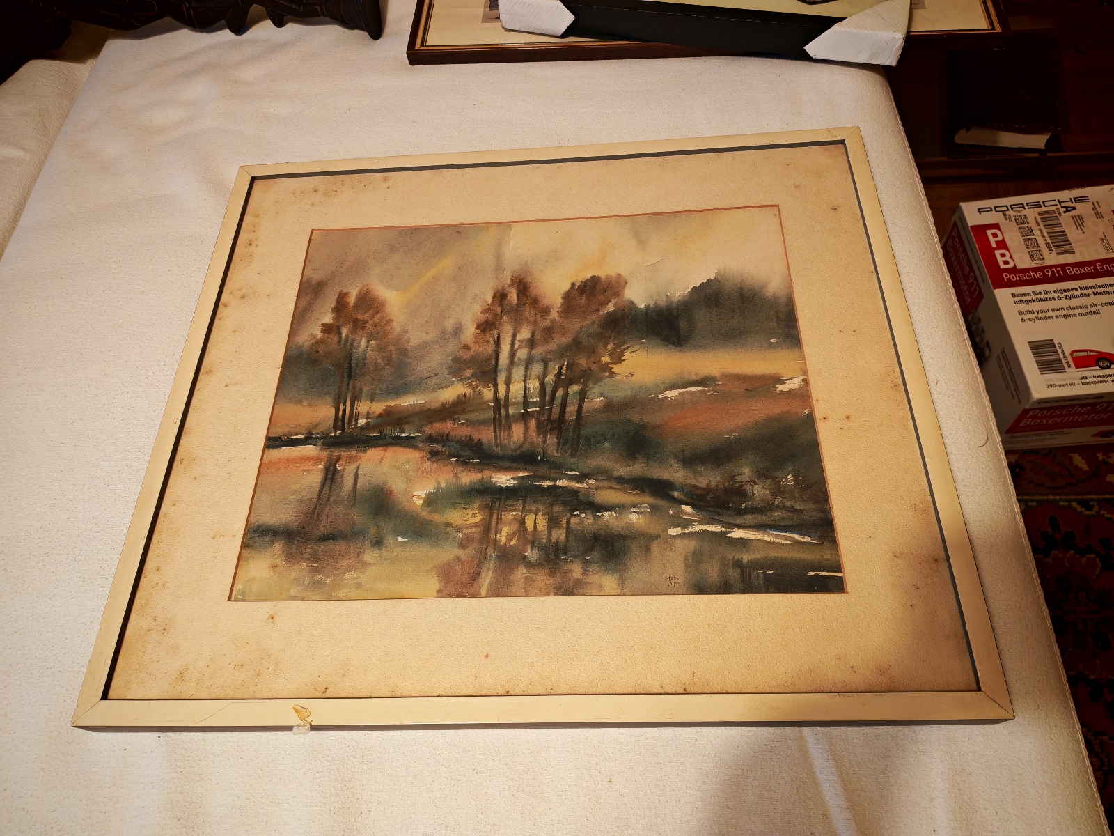 gerahmt, verglast, monogrammiert, Passepartout stark verschmutzt, ca. 59×51 cm, Bildausschnitt ca. 42×35 cm