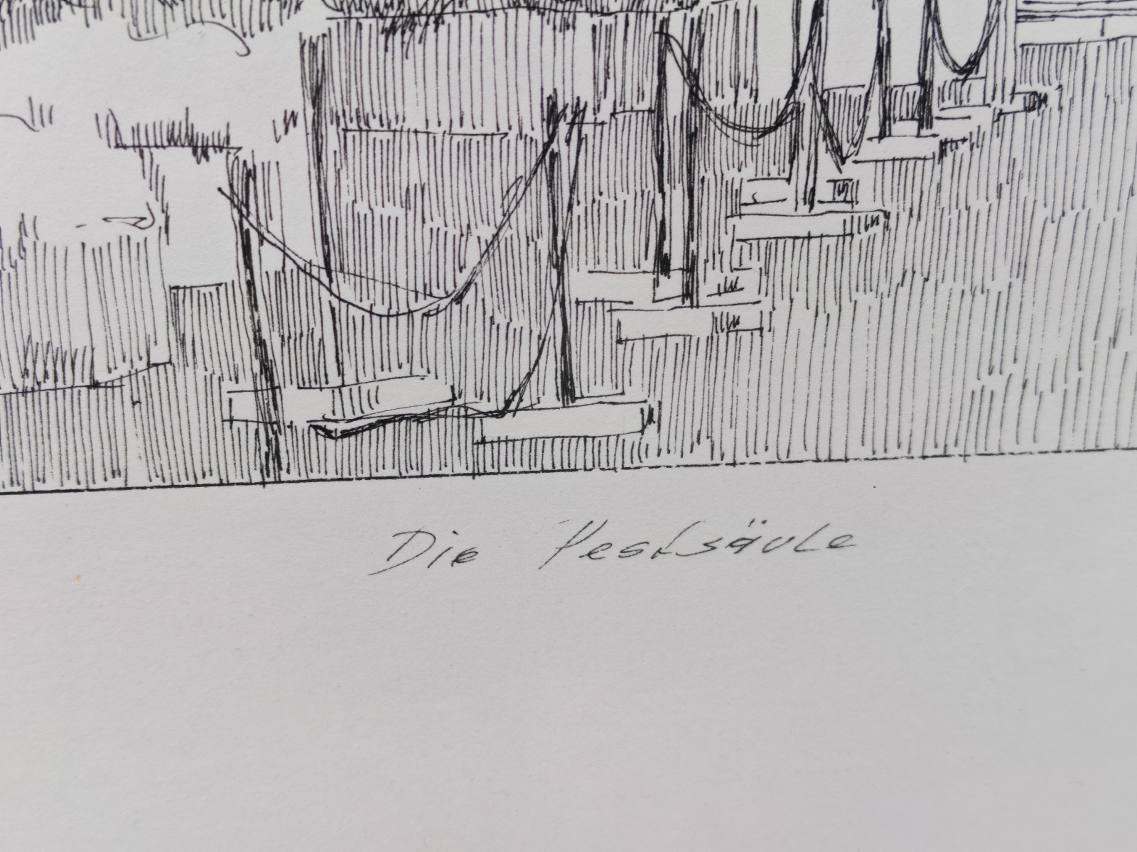 betitelt Pestsäule, signiert Schwarz, gerahmt, verglast, ca. 47×59 cm