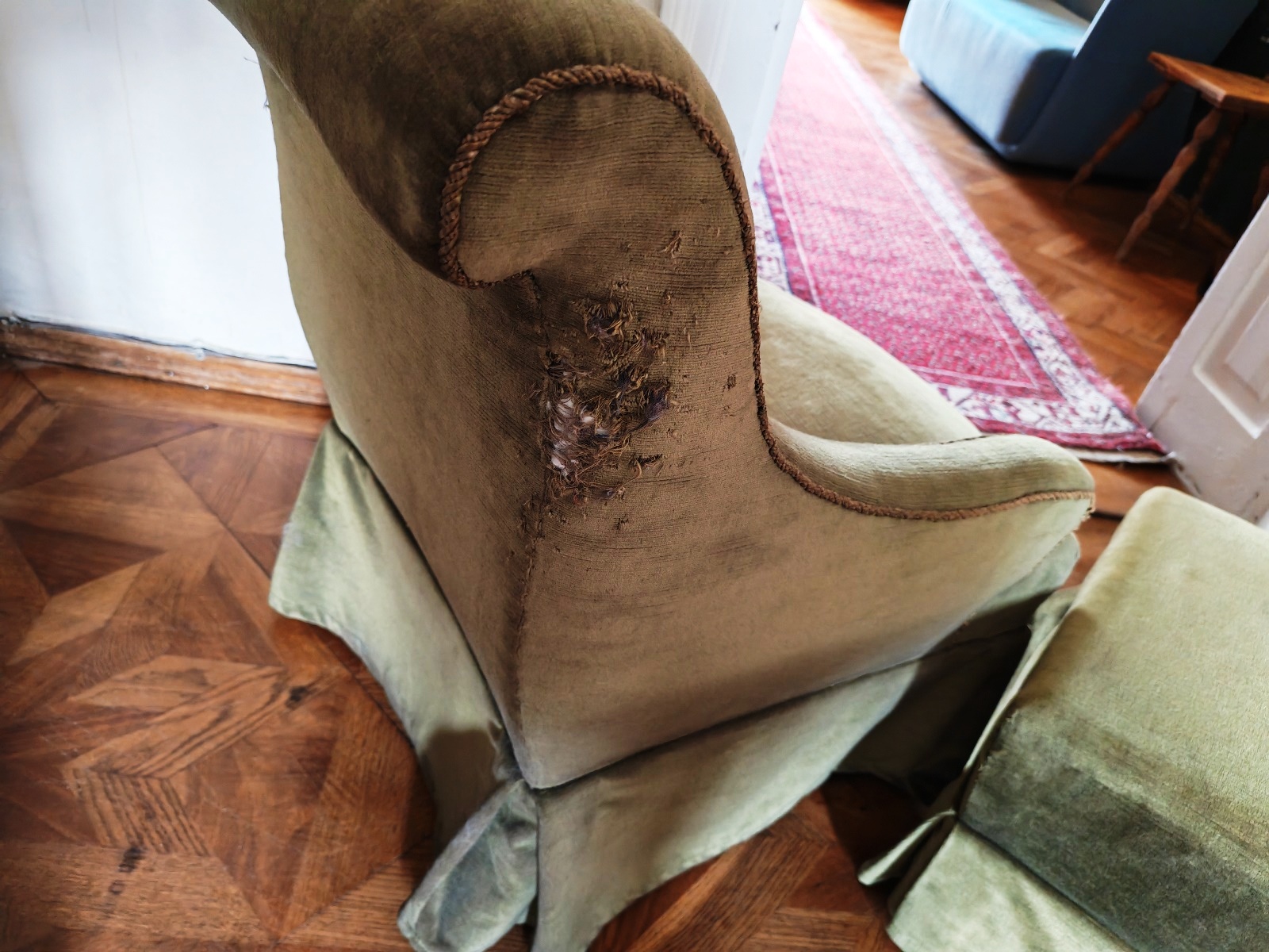 inklusive Fußhocker, Stoff beschädigt, siehe Fotos