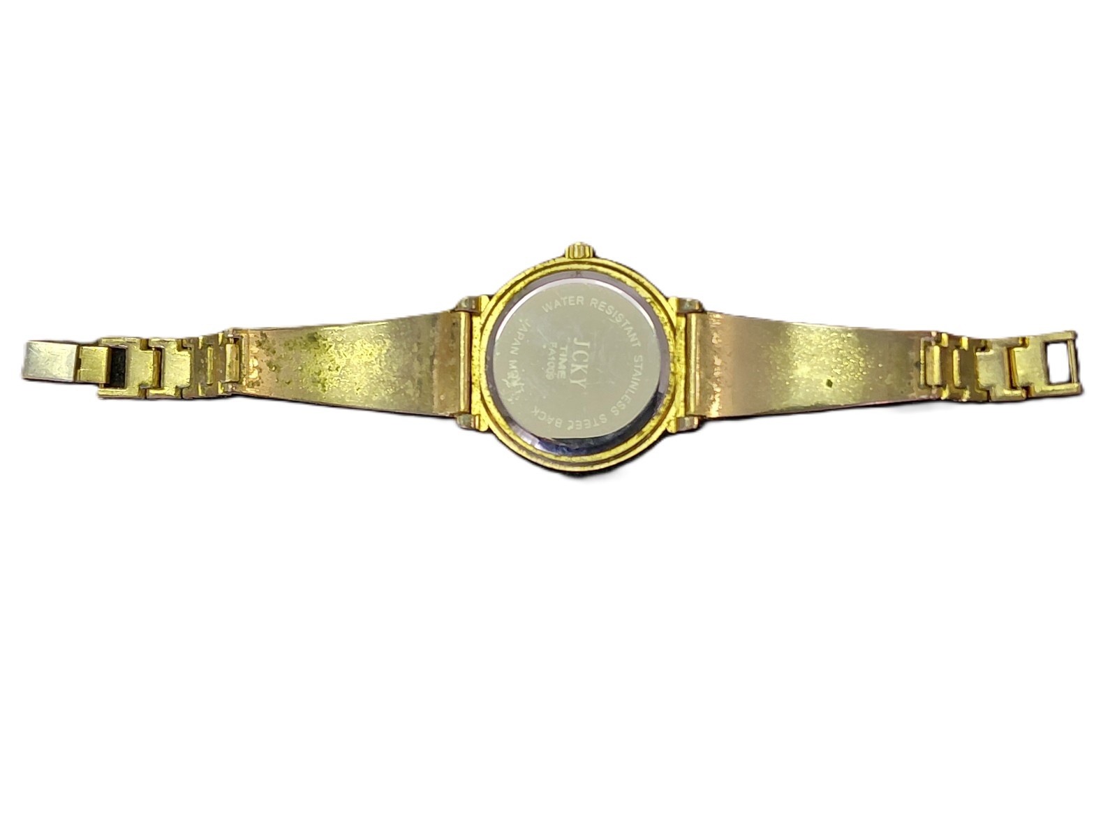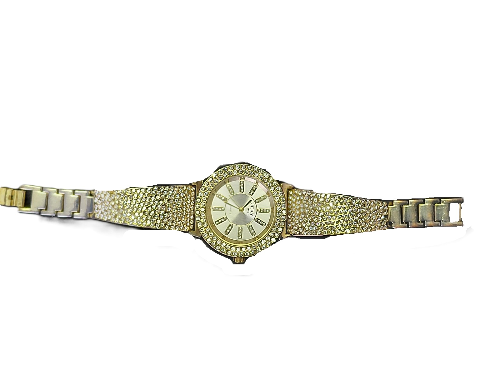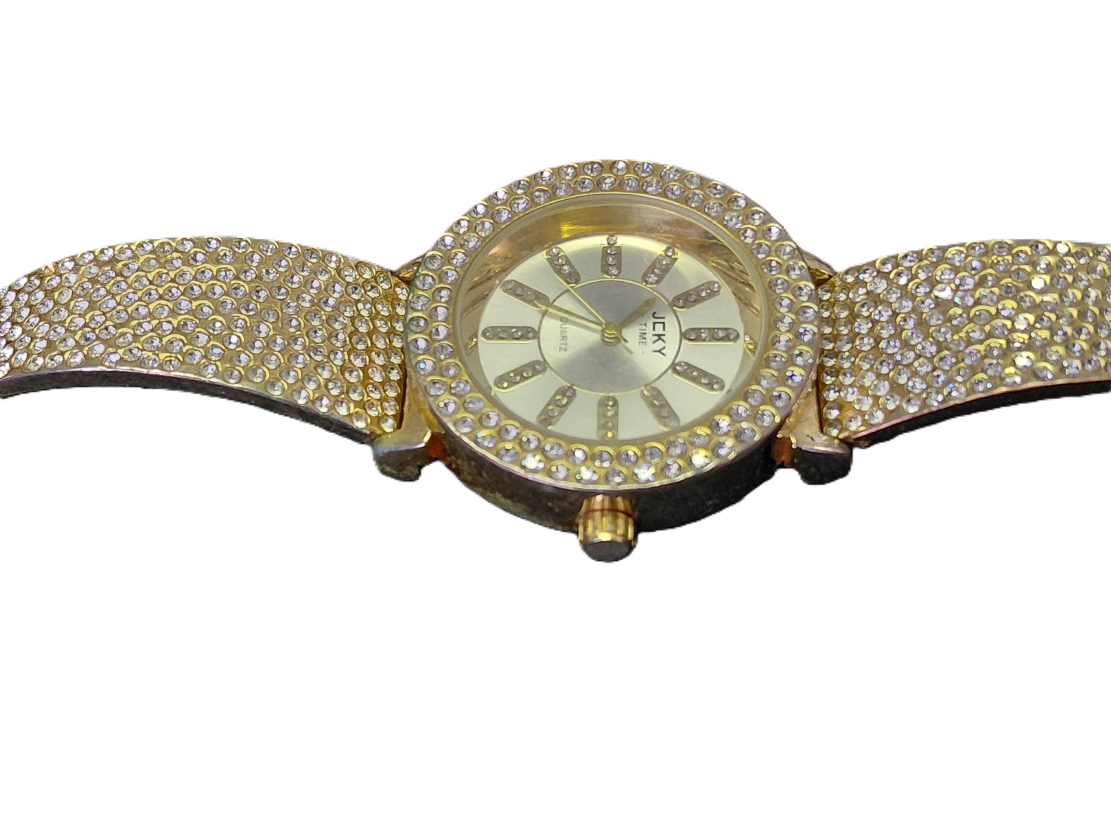 Quartzwerk, Batterie leer, Metall, Spangenuhr, Straßsteine, 1 Stein fehlt