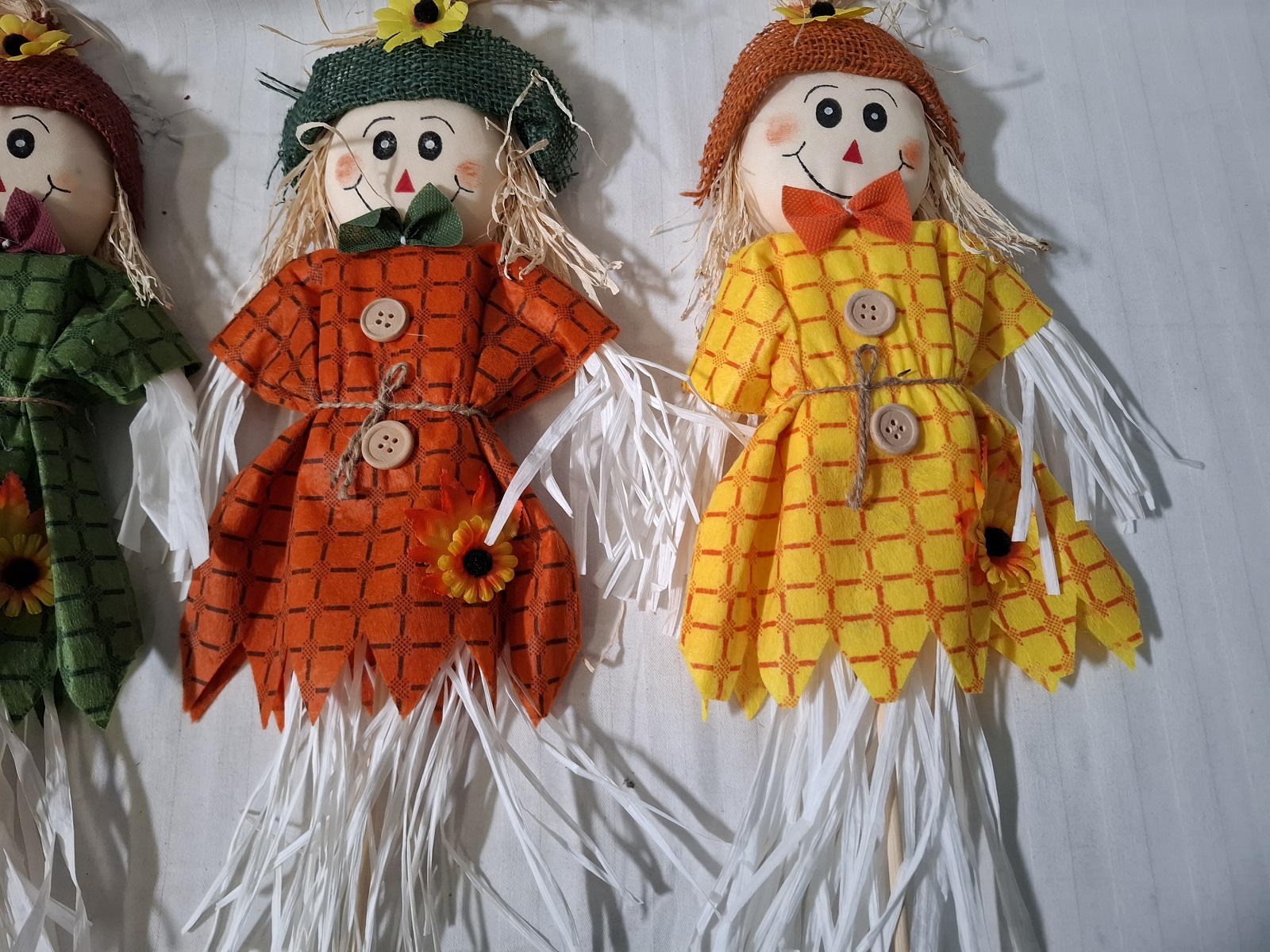 3 Stück Stroh-Puppen auf Stiel 62cm Höhe