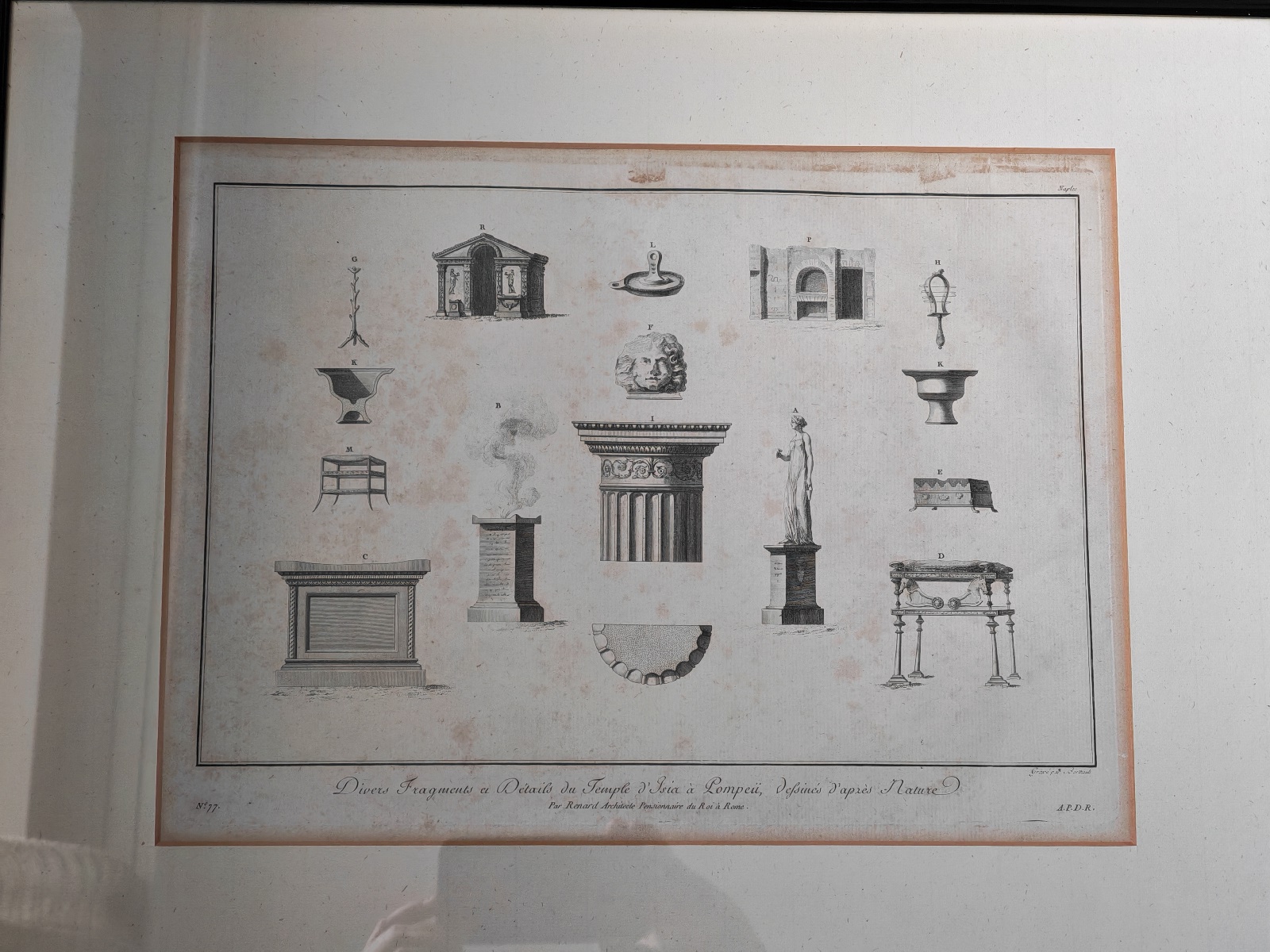 Details des Isis Tempel in Pompeji, Nr. 77, gerahmt, verglast, ca. 54×42 cm, Bildausschnitt ca. 37×28 cm