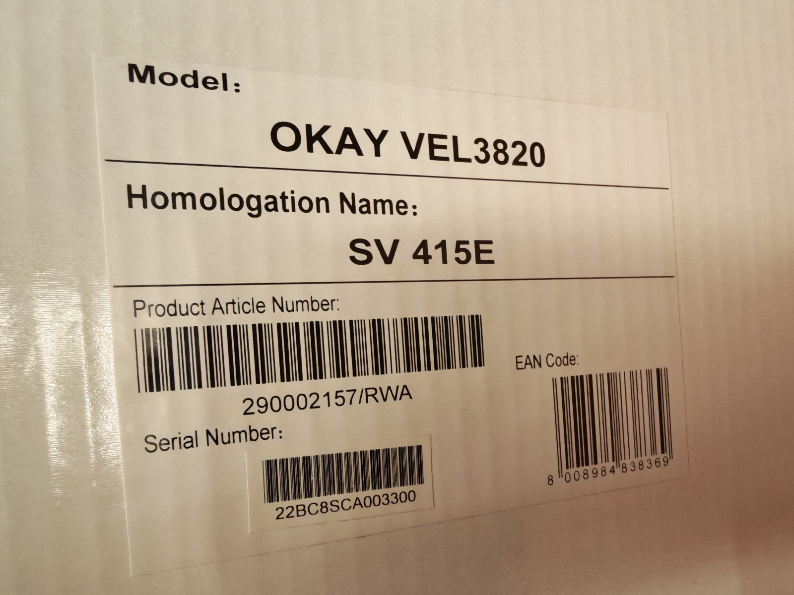 Modell VEL3820, neu, OVP