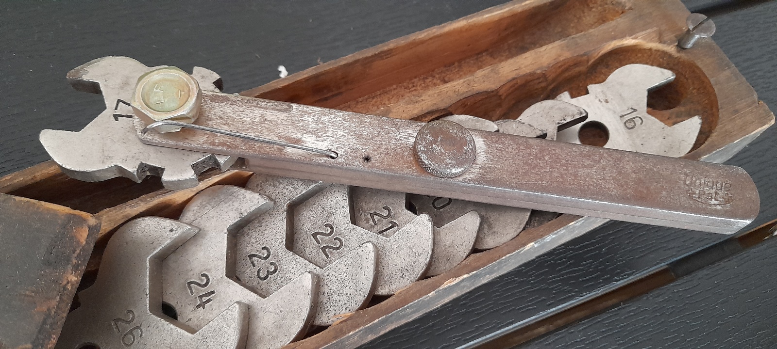 Antiker Satz in einer Holzkiste, Schlüssel wechselbar