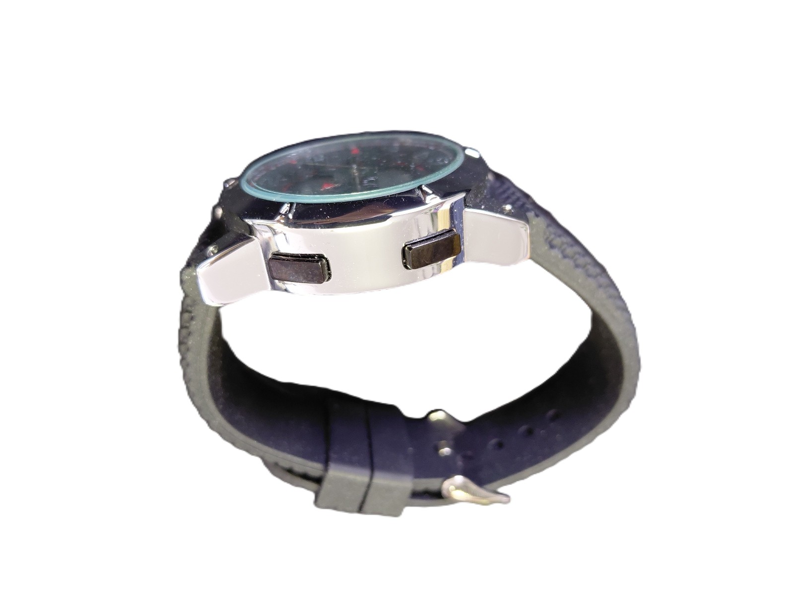 Quartzwerk, Batterie leer, Gummiband mit Dornschließe, in Etui