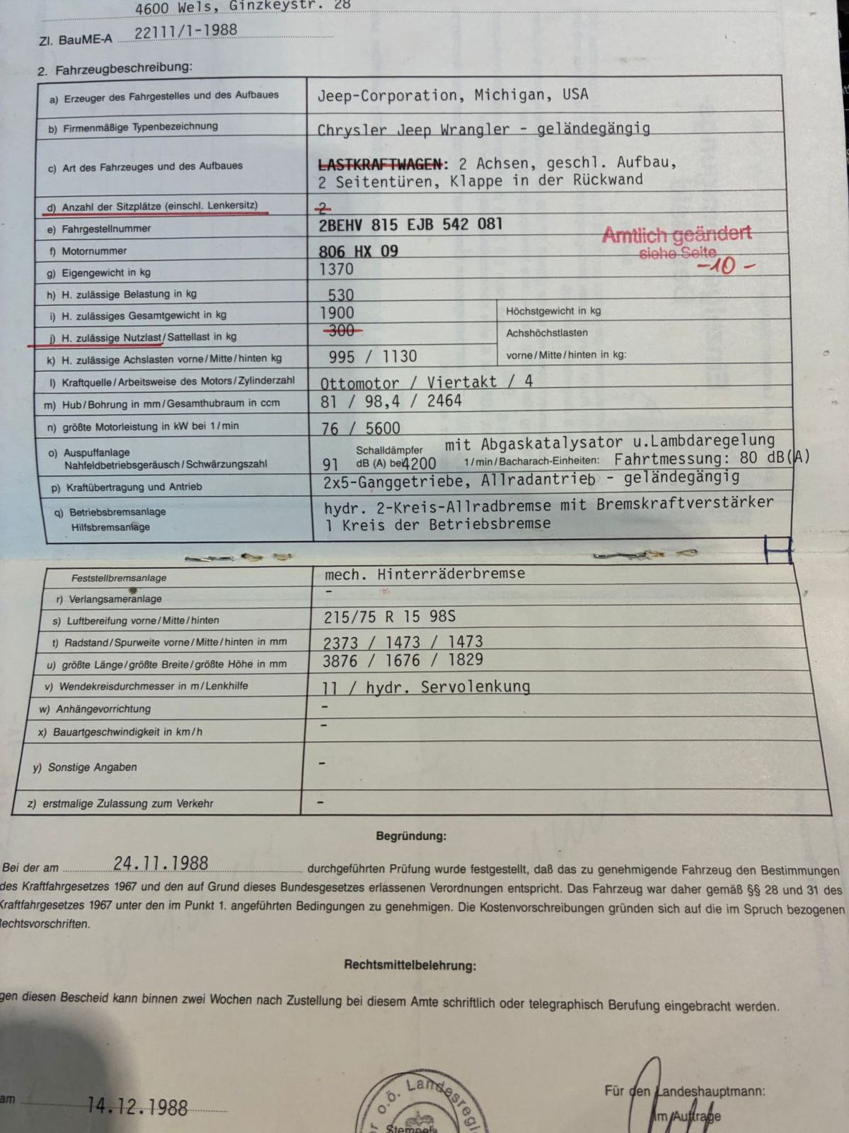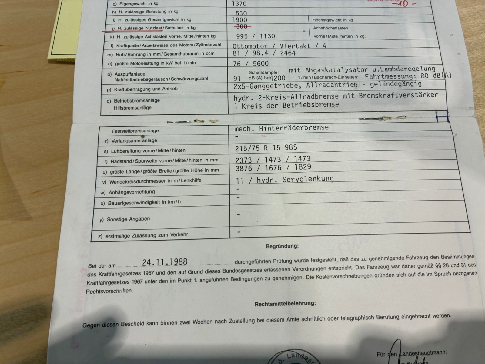 Erstgenehmigung 14.12.1988, Fahrzeug fahrbereit, nicht überprüft, seit April 2021 abgemeldet, km-Stand 171270, siehe Fotos