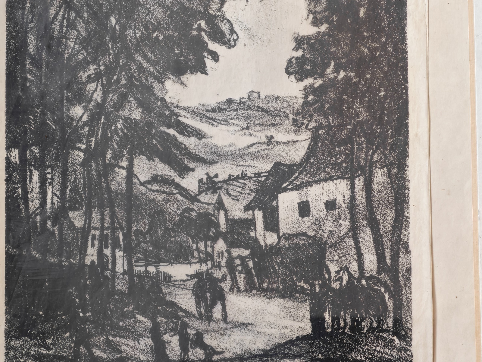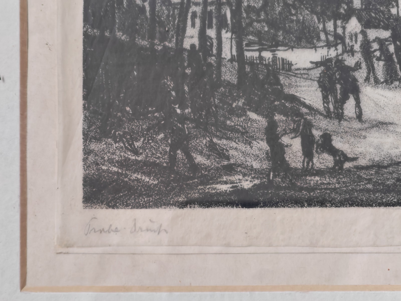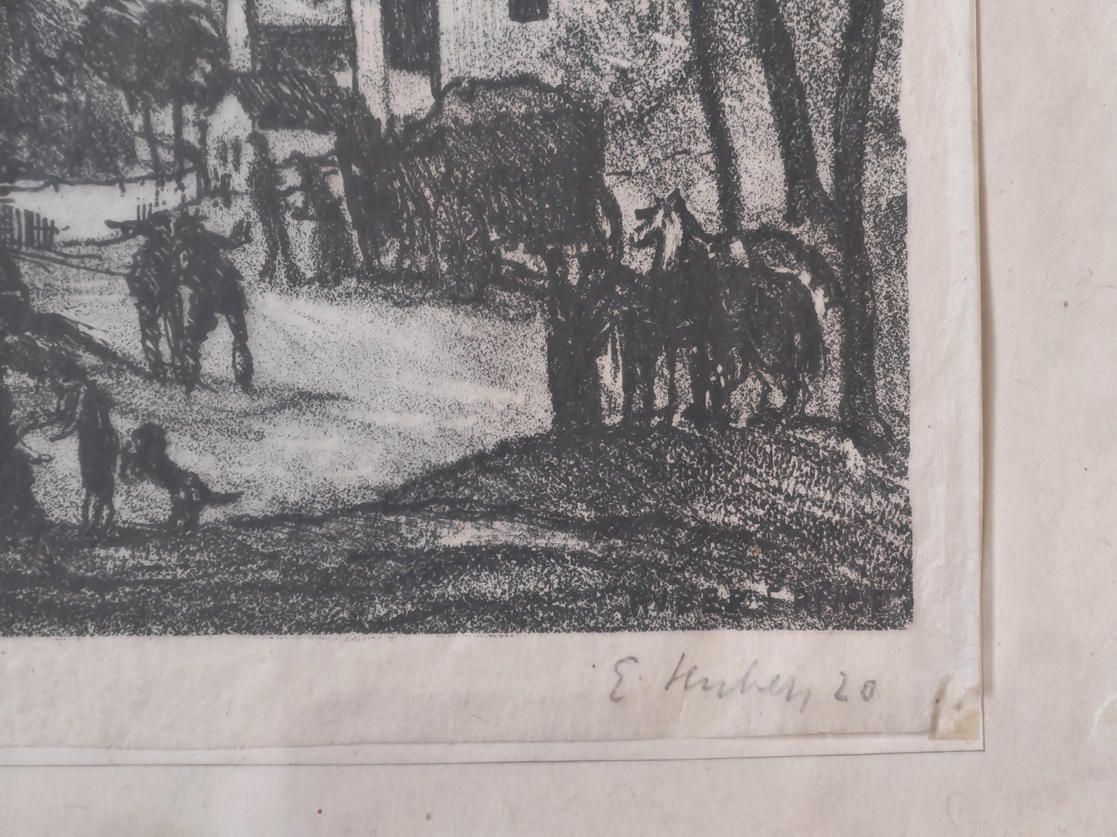 Ernst Huber, Bildausschnitt ca. 13×20 cm, signiert E. Huber, gerahmt, verglast, ca. 25×33 cm