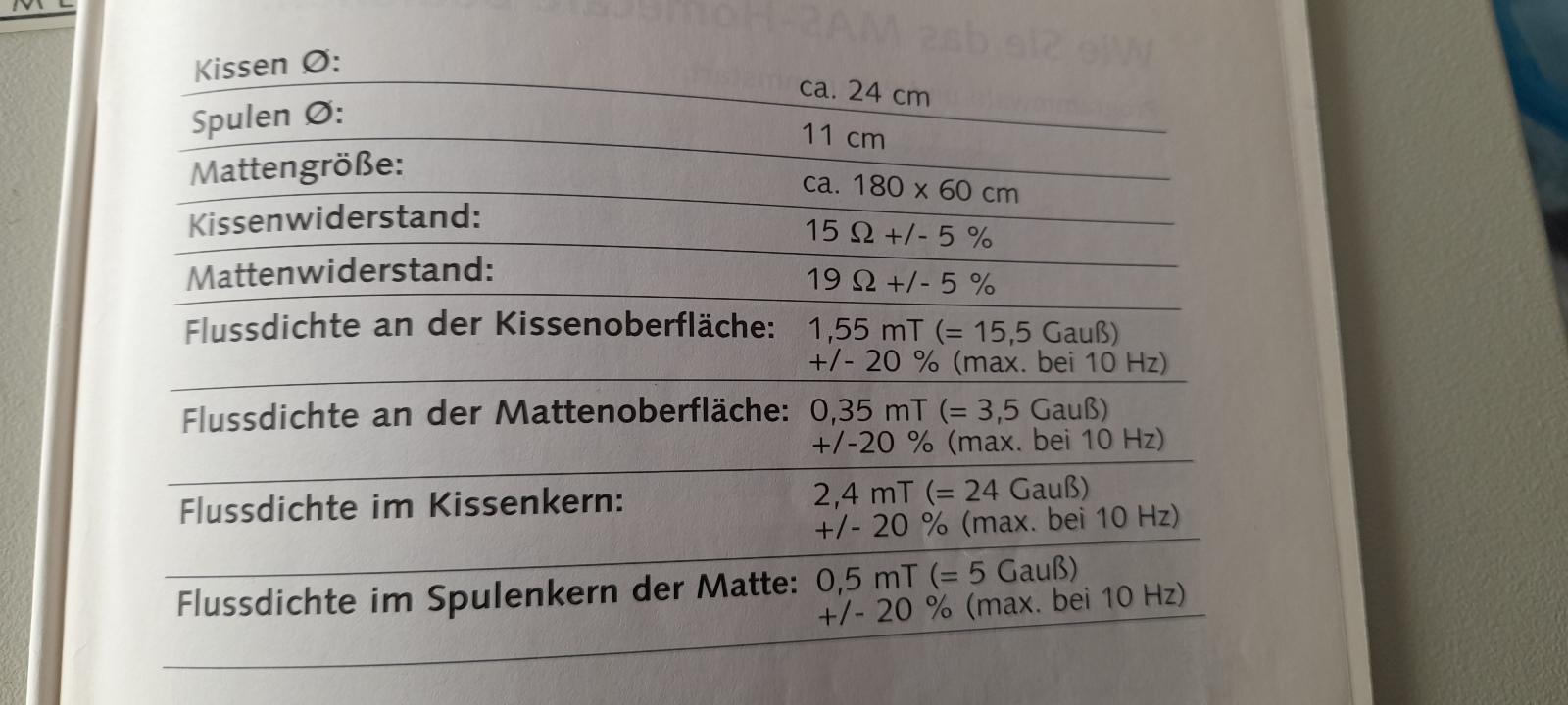 Magnetfeldmatte, -Kissen und -gerät, siehe Fotos