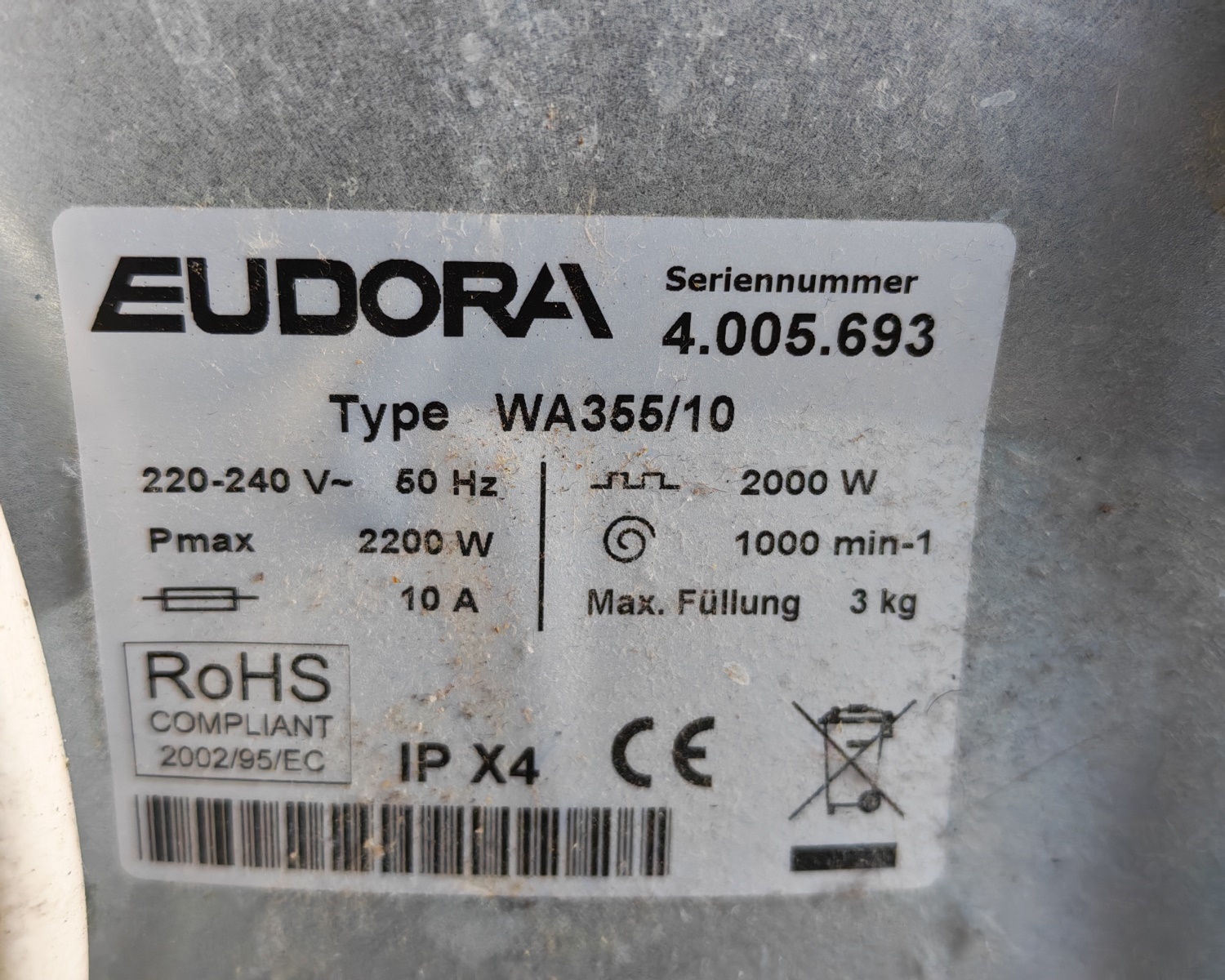 Modell Euronova 355, Type WA355/10, Füllmenge 3 kg