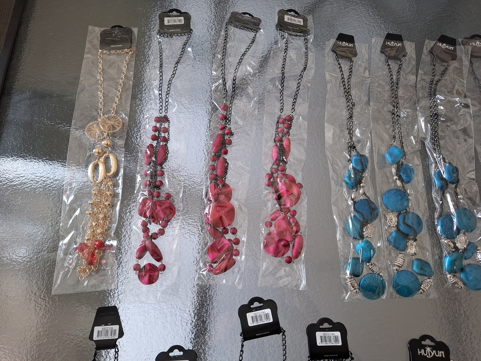 20 Stück Modeschmuck, verschiedene Modelle und Farben — die Schmuckstücke haben Fehler, entweder Kette gerissen oder die Schmuckstücke sind klebrig