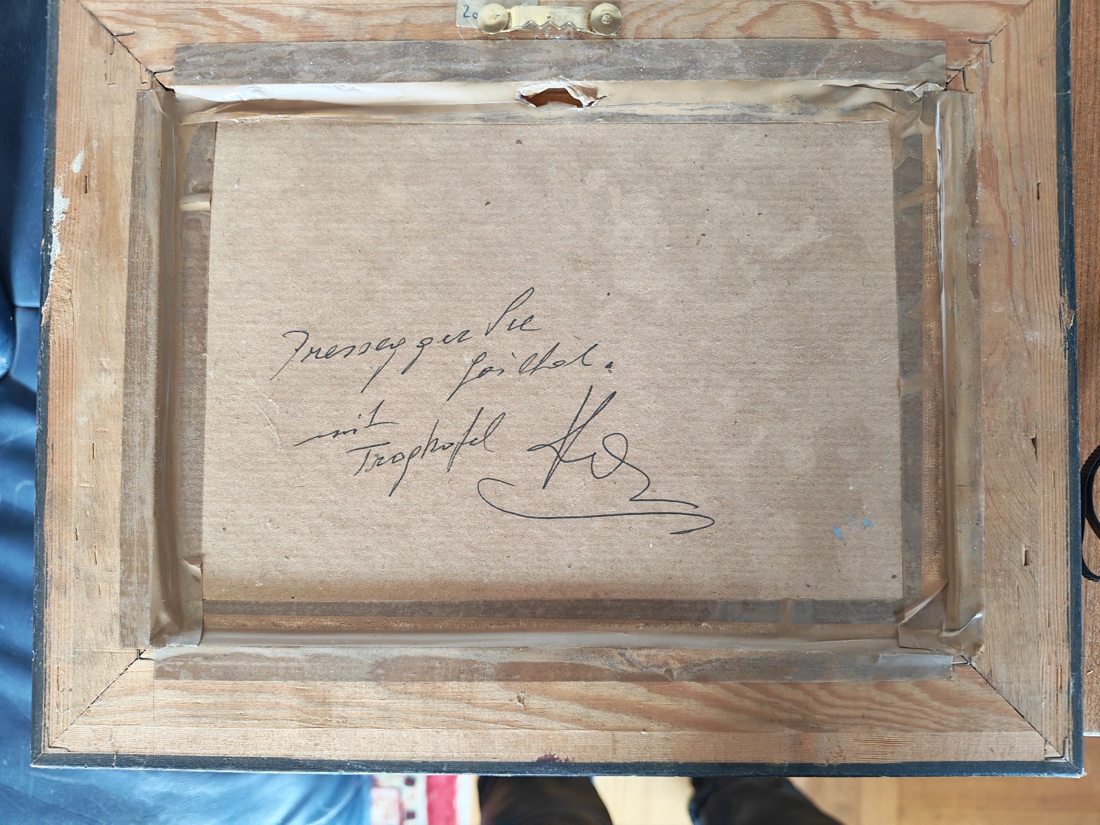 gerahmt, verglast, signiert, revers mit Widmung, ca. 32×25 cm, Bildausschnitt ca. 22×15 cm