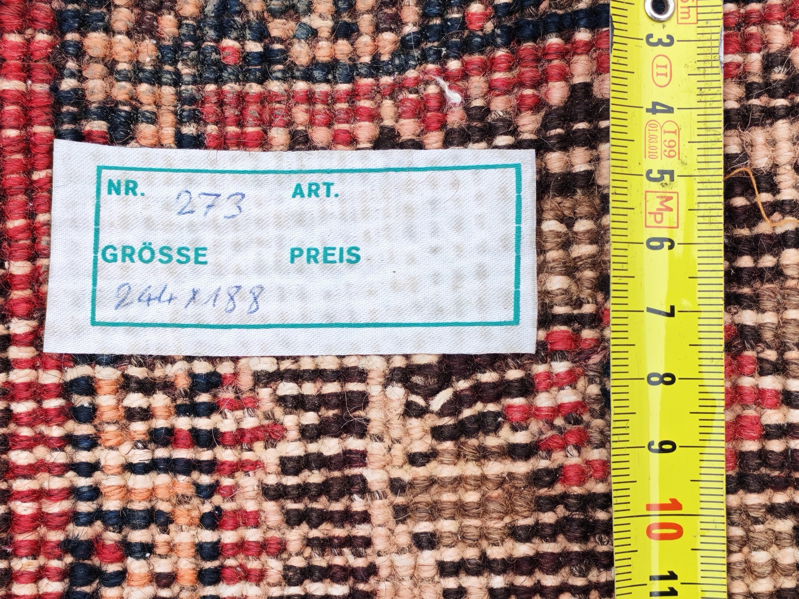 ca. 244×118 cm, chemische Reinigung wird empfohlen, schadhafte Stellen siehe Fotos