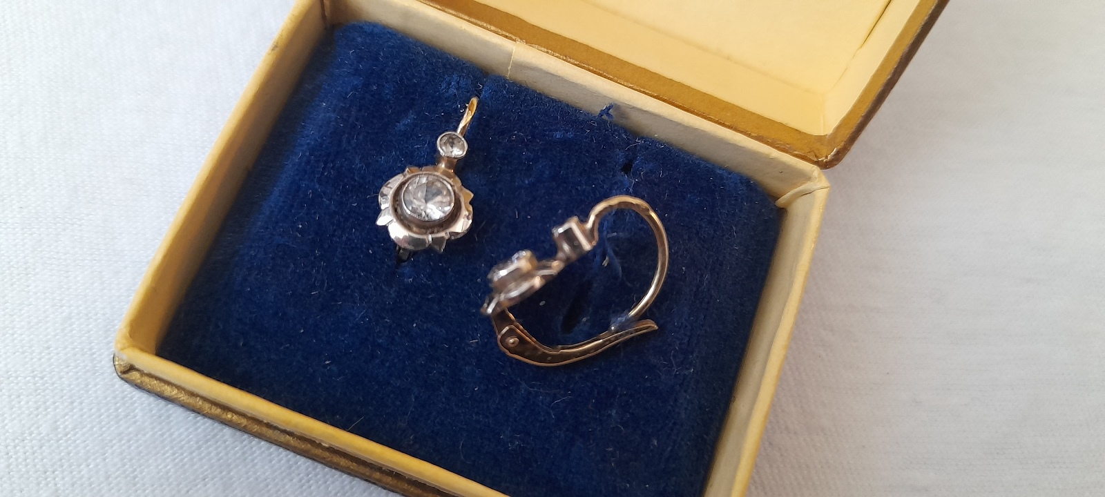 Zwei antike Ohrstecker, im Etui