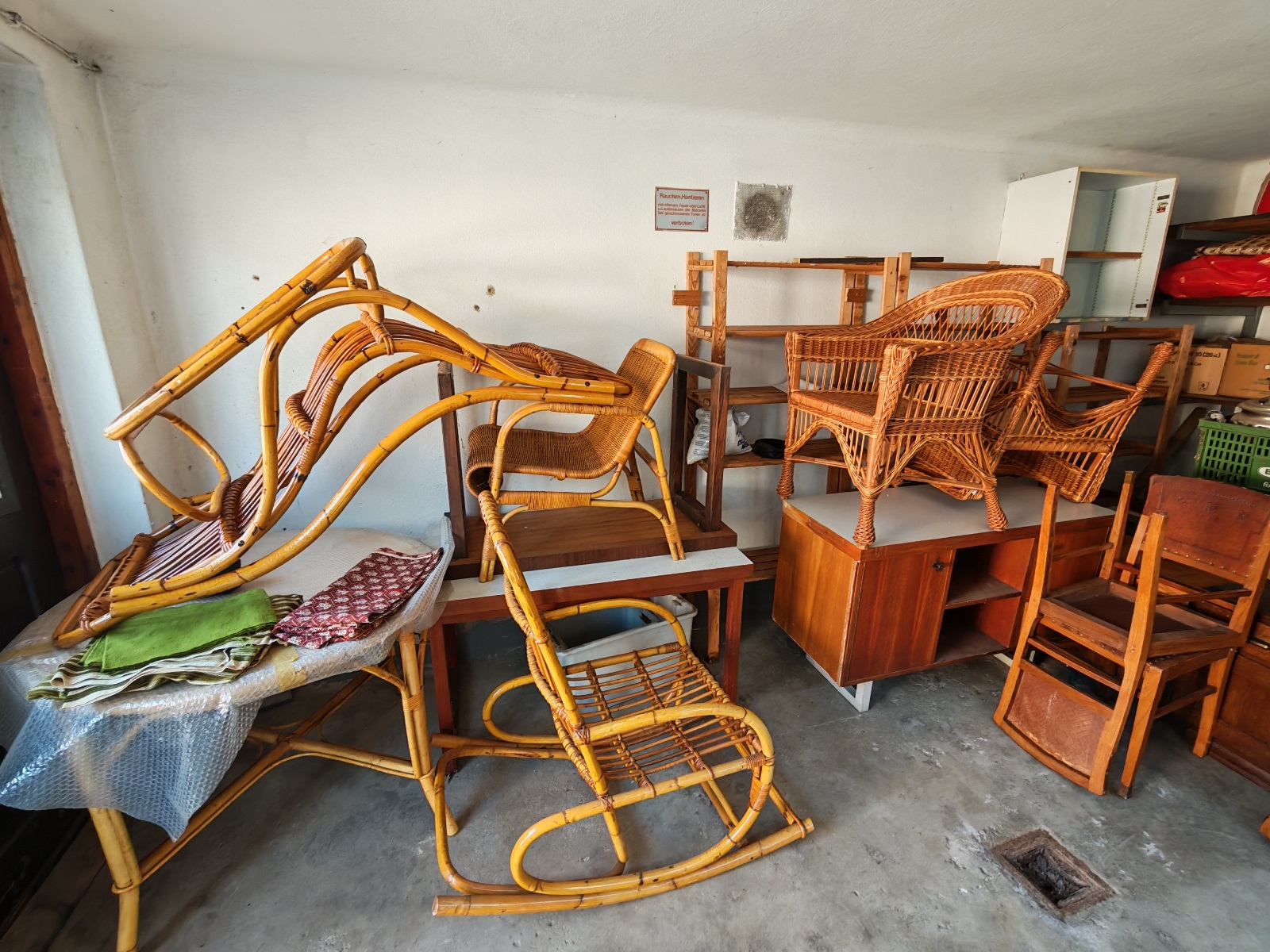 Naturrattanmöbel in Küche und Garage, siehe Fotos