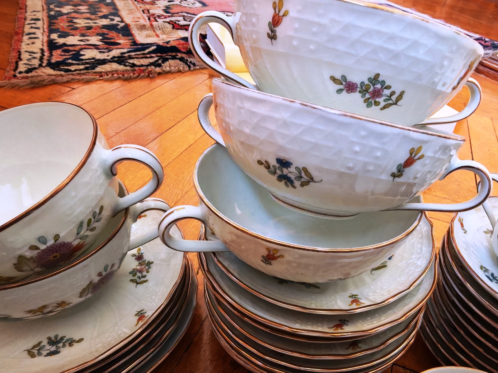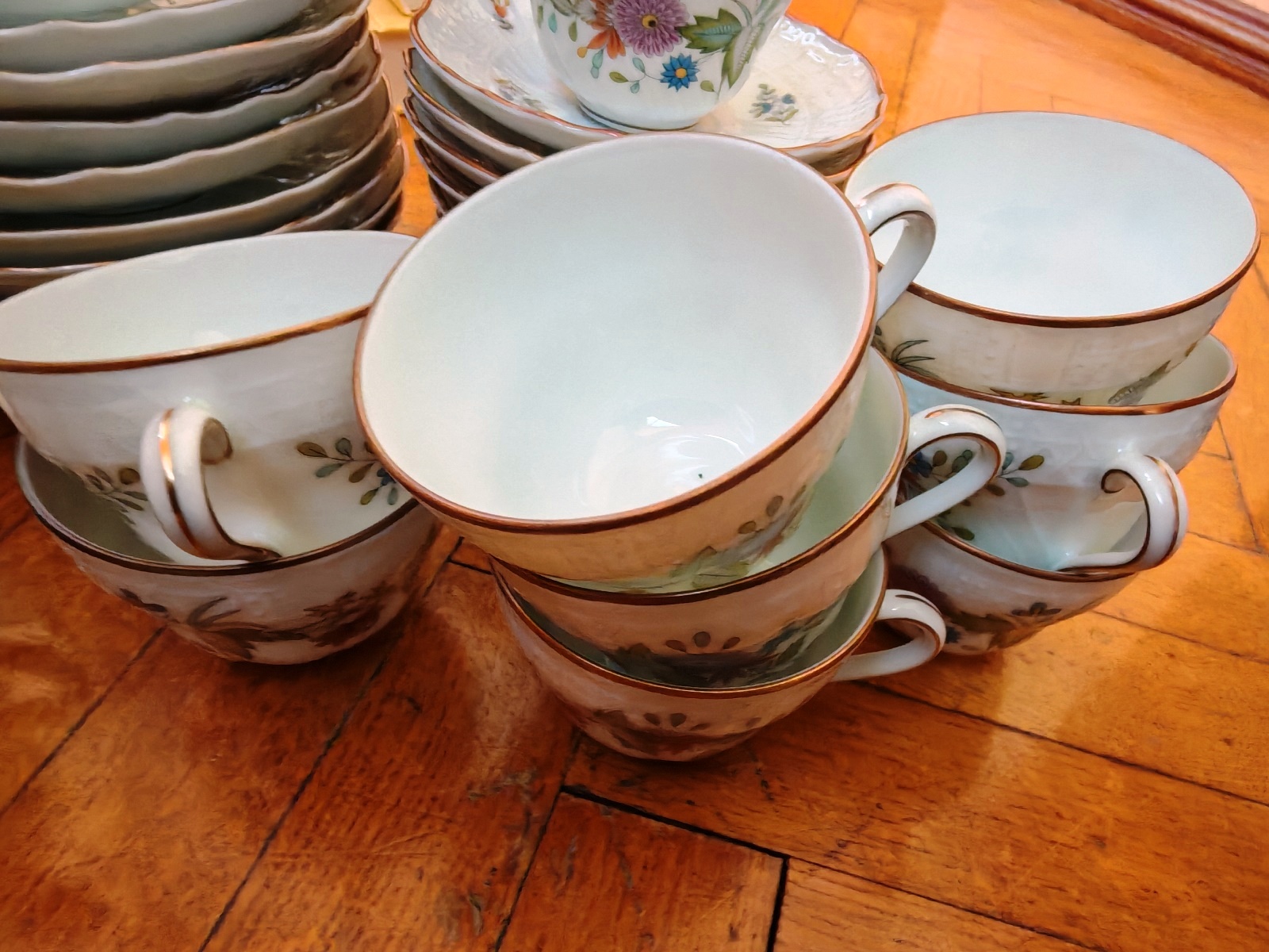 Hutschenreuther, 15 Untertassen, 7 Teetassen, 3 Suppenschalen, 10 Mokkauntertassen, 10 Mokkatassen, 1 Zuckerschale
