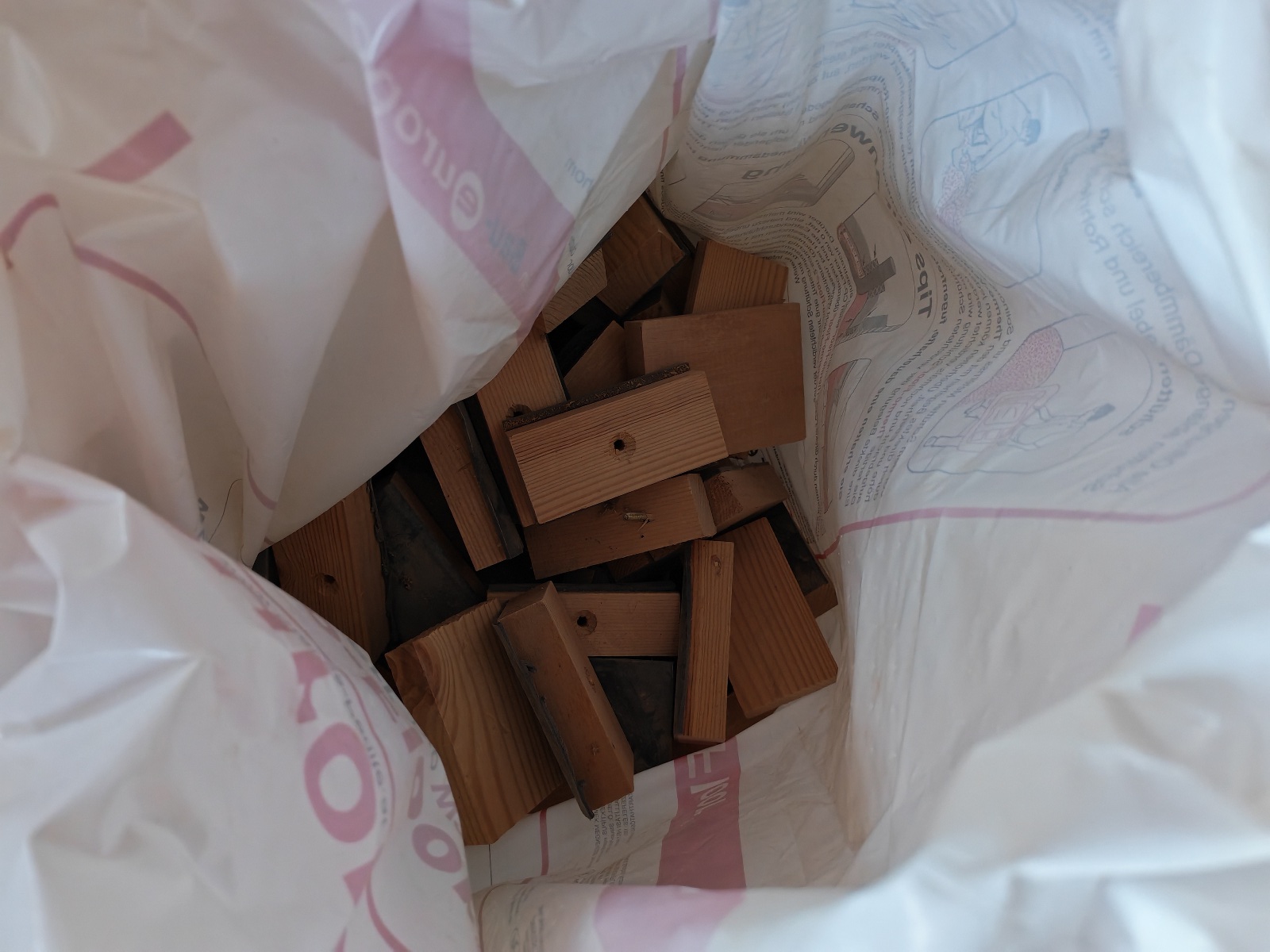 3 Säcke, ein Kübel, Holz und WPC, siehe Fotos