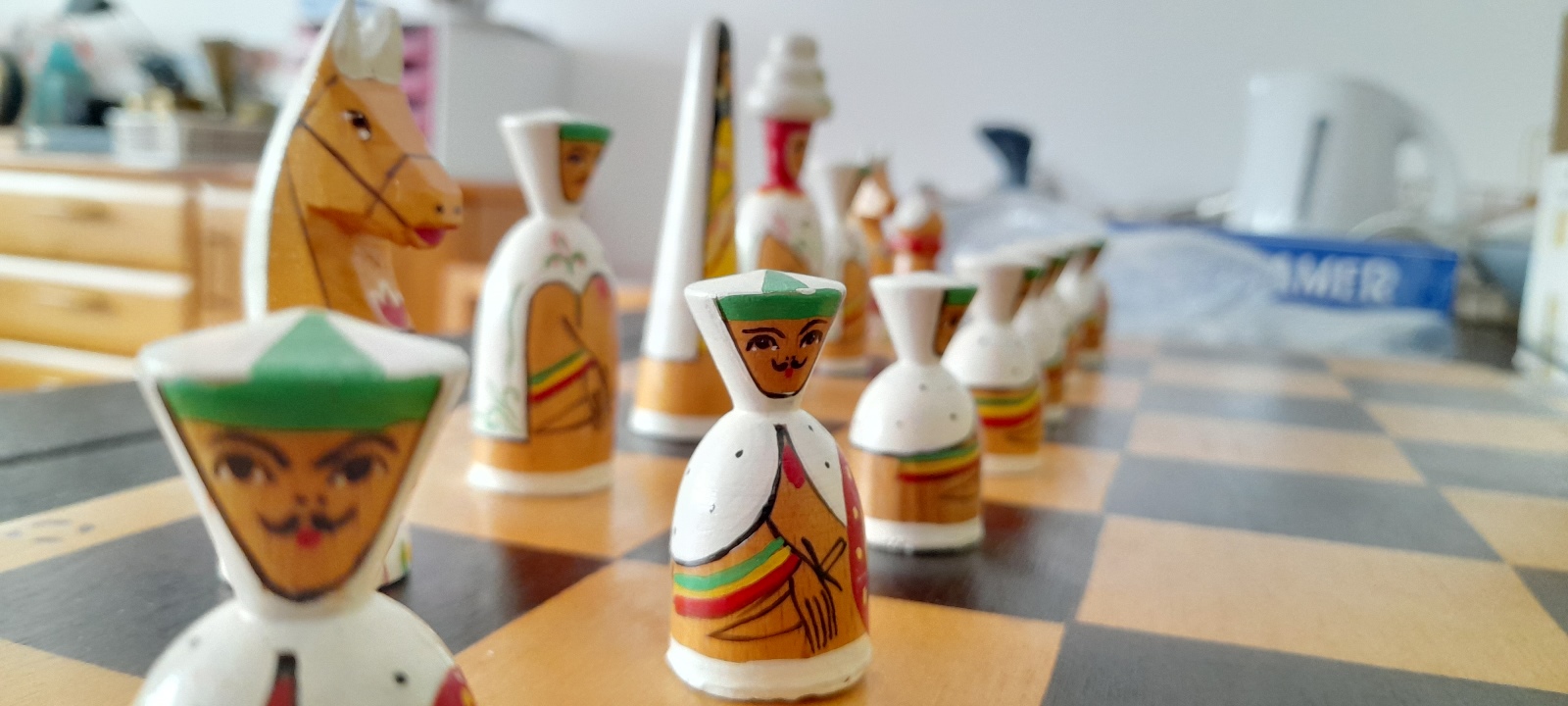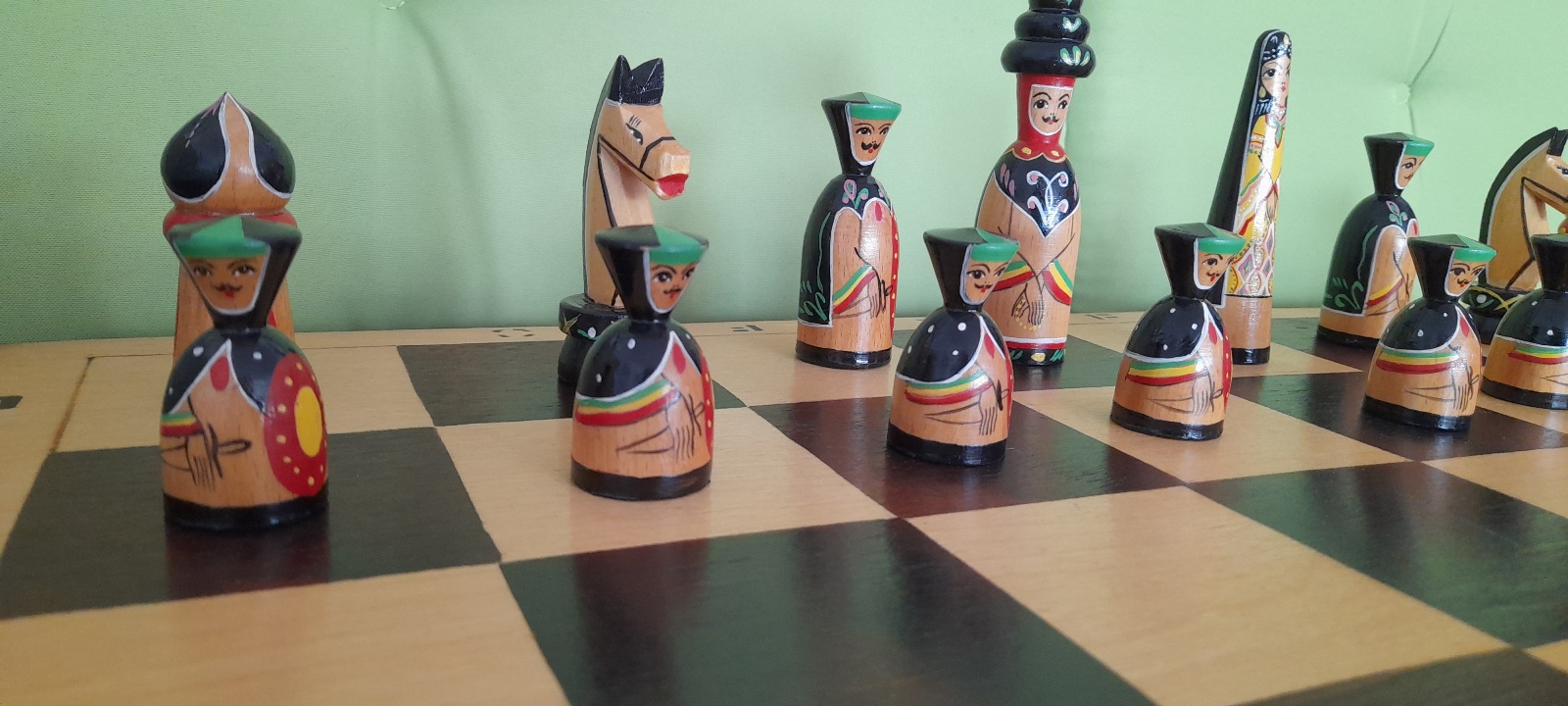 Herkunft Tatschikistan, Figuren im Matrjoschka-Stil, Spielfeld 60×60 cm