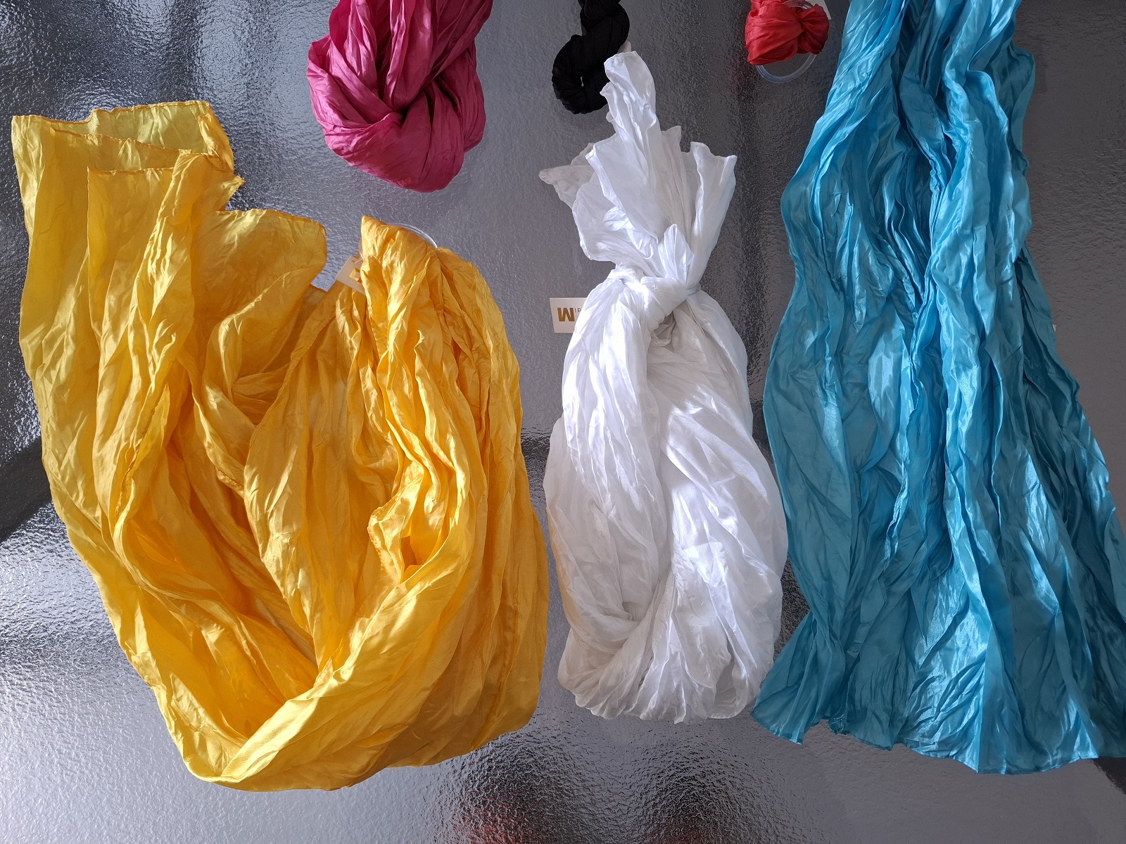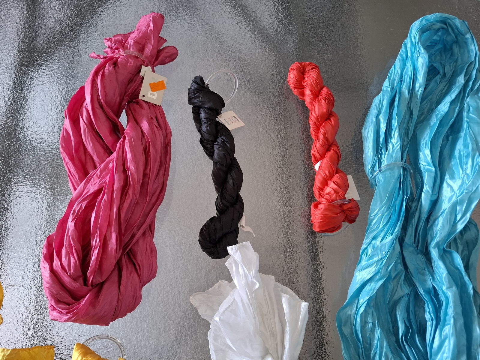 6 Stück Schals in verschiedenen Farben und Modellen — die Schals sind Ausstellungsstücke, Musterkollektion oder Einzelstücke