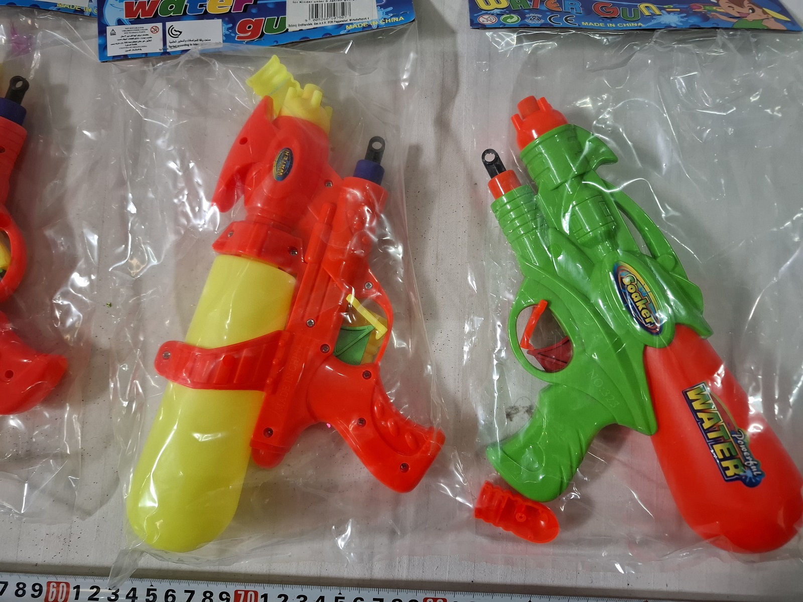 4 Stück Wasserpistolen – bei den Wasserpistolen sind kleine Stücke weggebrochen, die Wasserpistolen sind aber voll funktionsfähig