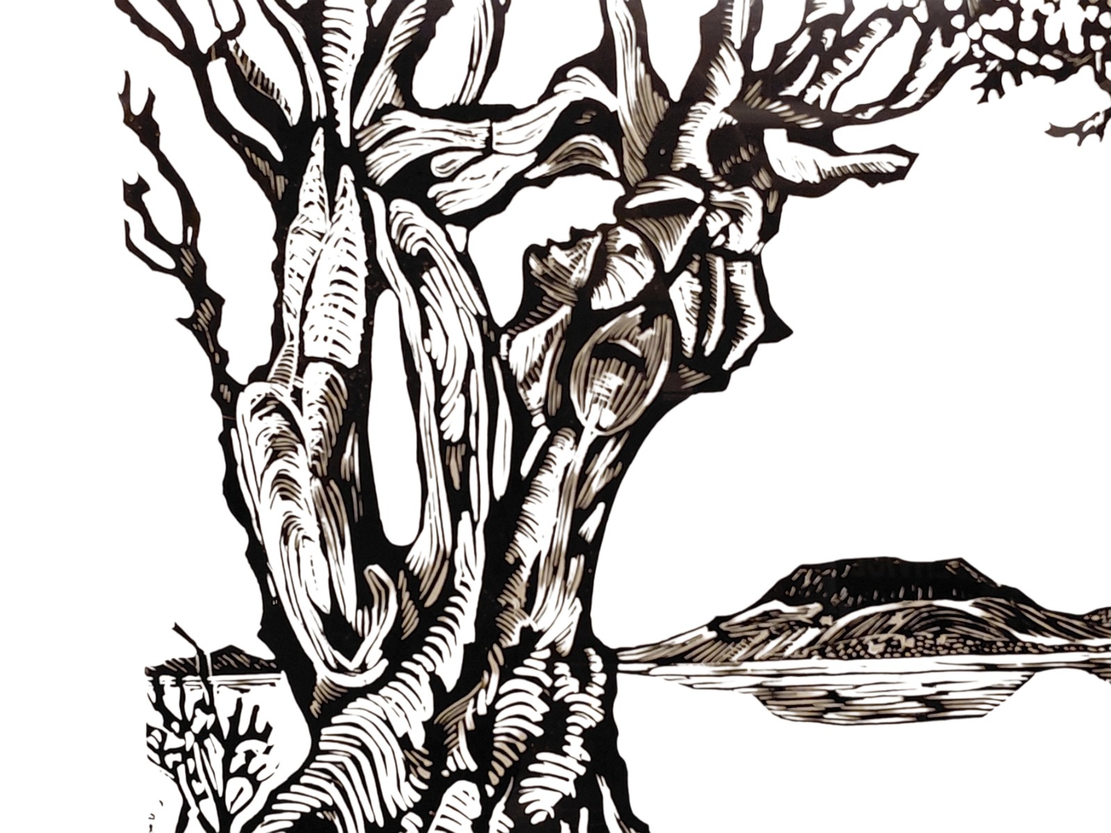 gerahmt, verglast, signiert, Glas gesprungen, ca. 42×60 cm