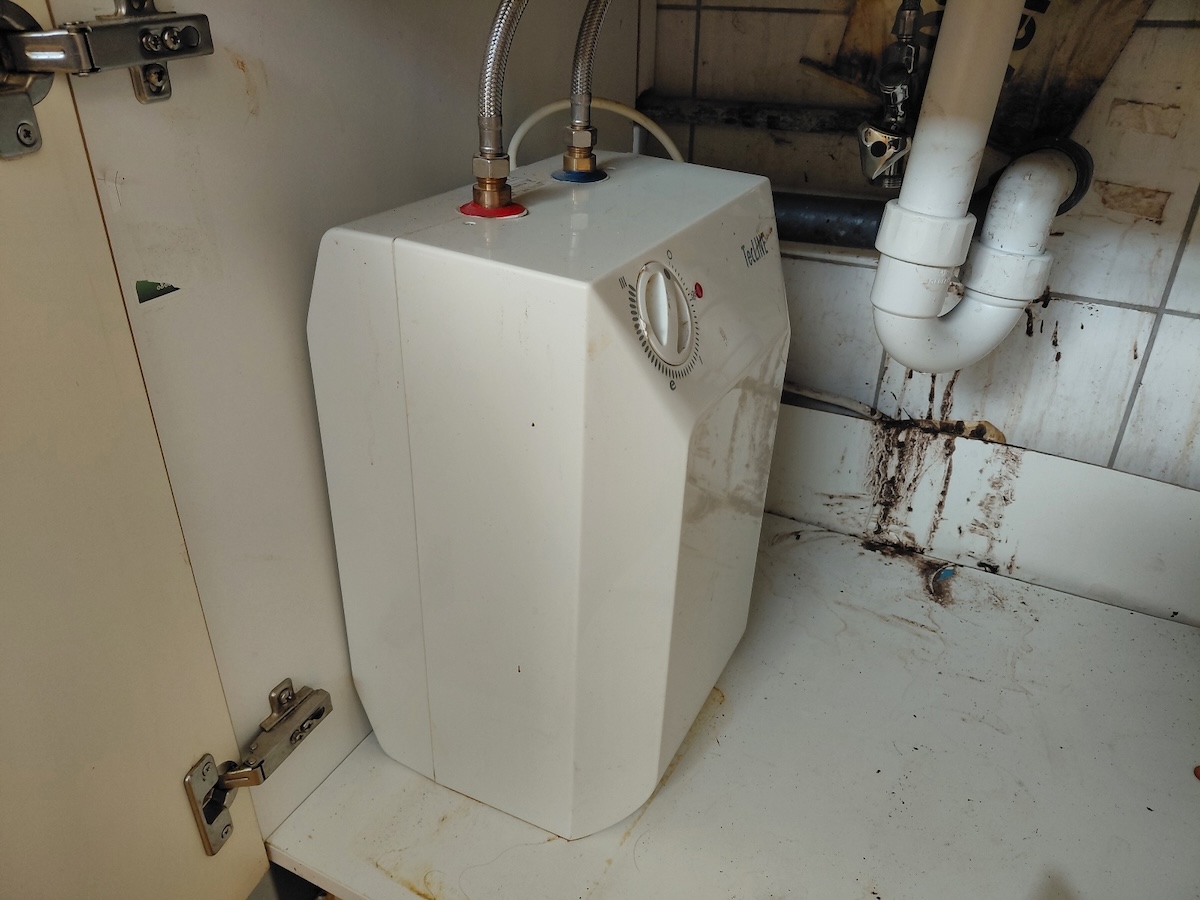 inkl. Herd und Dunstabzug von Whirlpool, mit Untertischboiler, BHT ca. 240x206x62 cm, siehe Fotos