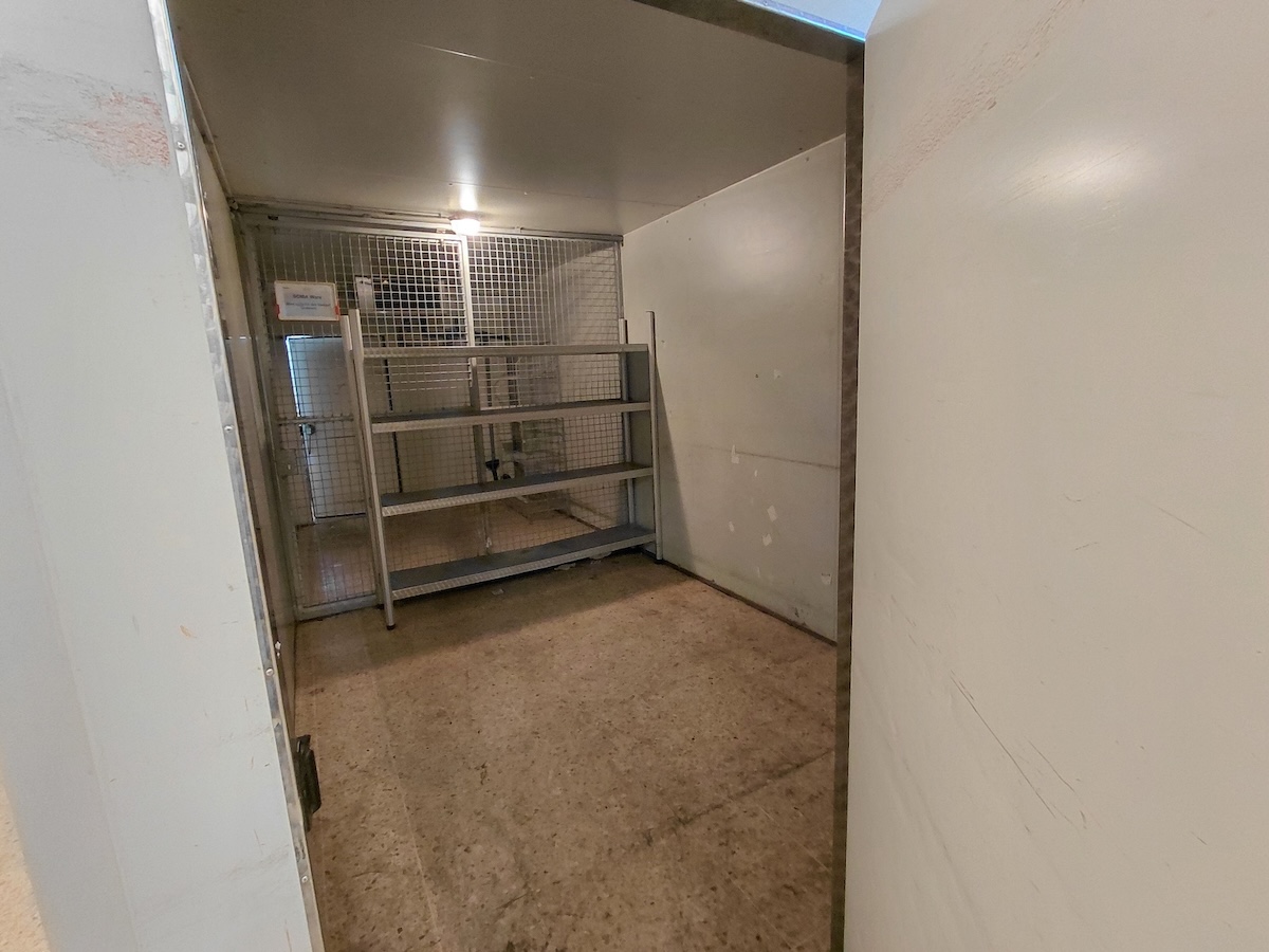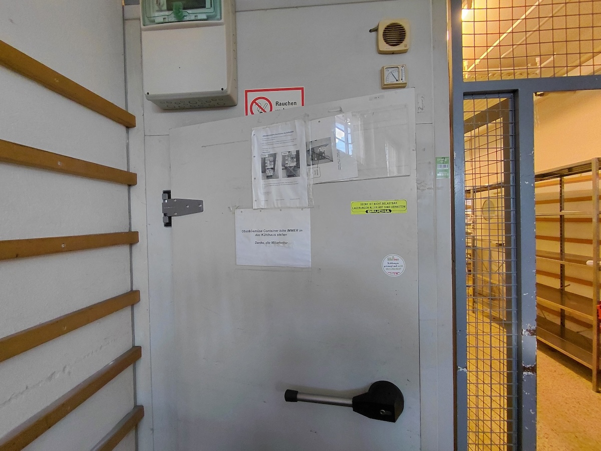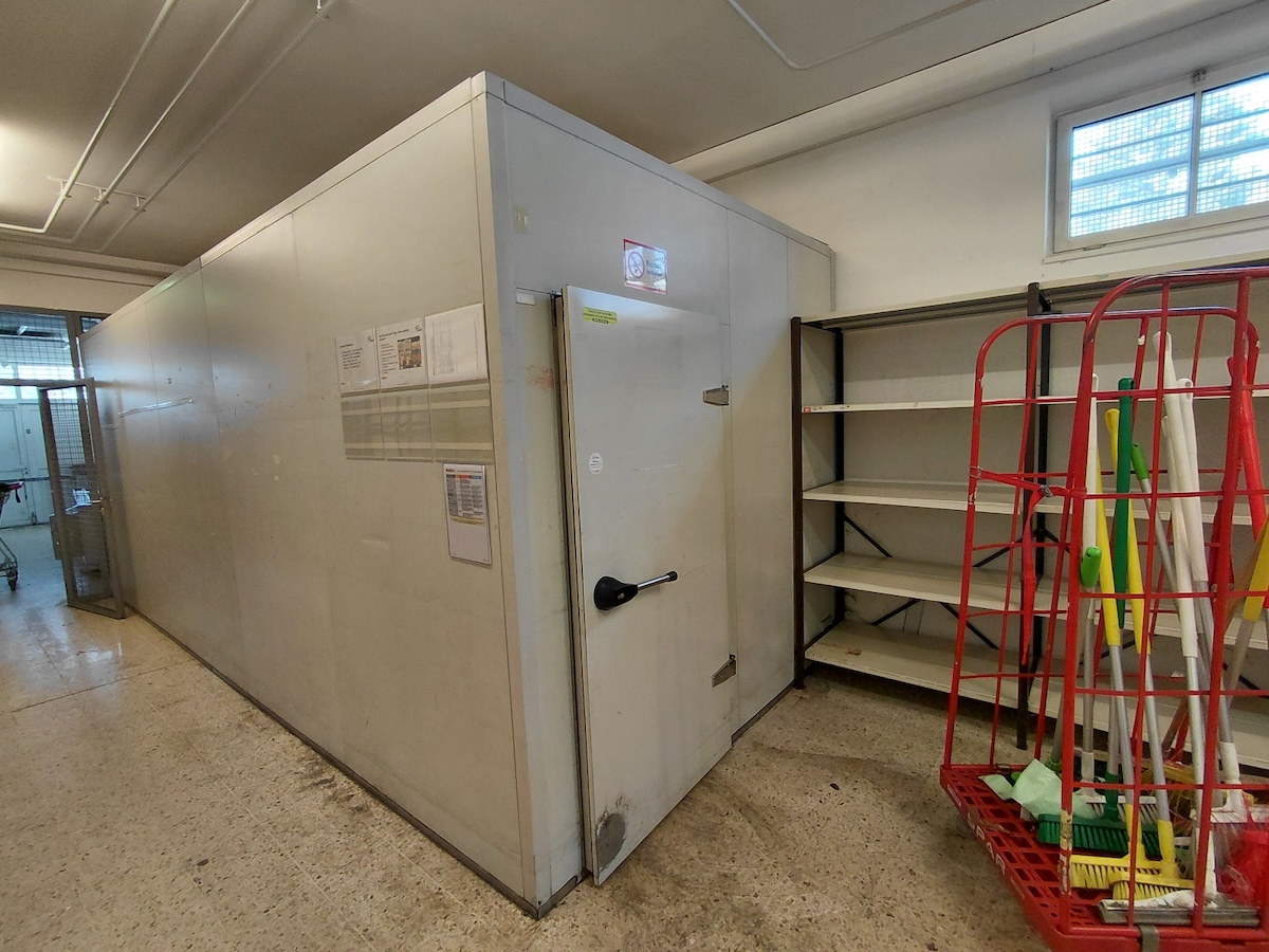 mit zwei Zugängen, inklusive Gittertrennwand und Regal, BHT ca. 6,5 Laufmeter x246x253 cm, siehe Fotos, ohne Aussenanlagen, nur Verdampfer, Kühlgas wird vor dem Abbau fachgerecht abgesaugt, Selbstabbau!