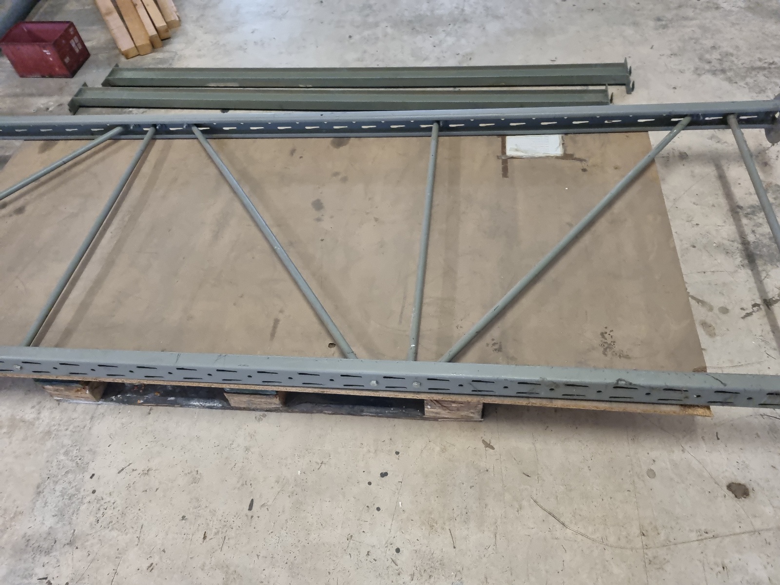 bestehend aus 6 Stehern Höhe je 310 cm, 16 Einhängern Länge je 225cm, 8 Böden, Fach- und Feldlast je 2000kg, bereits abgebaut, siehe Fotos