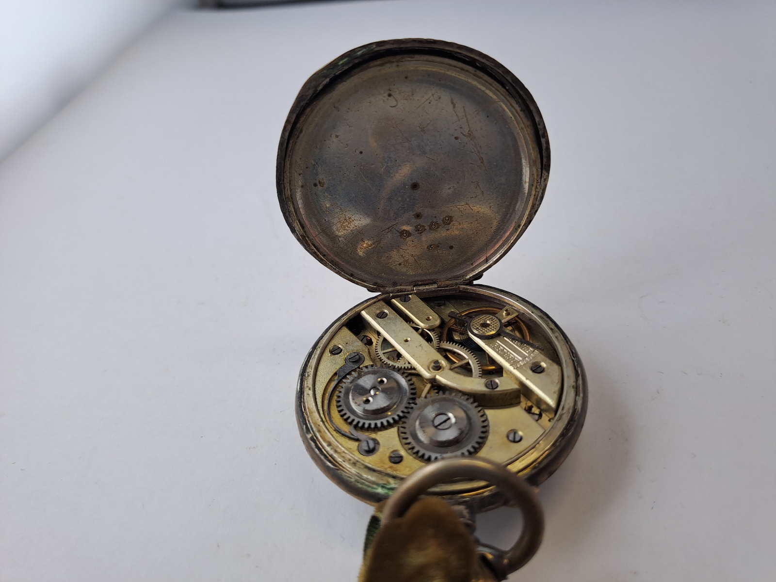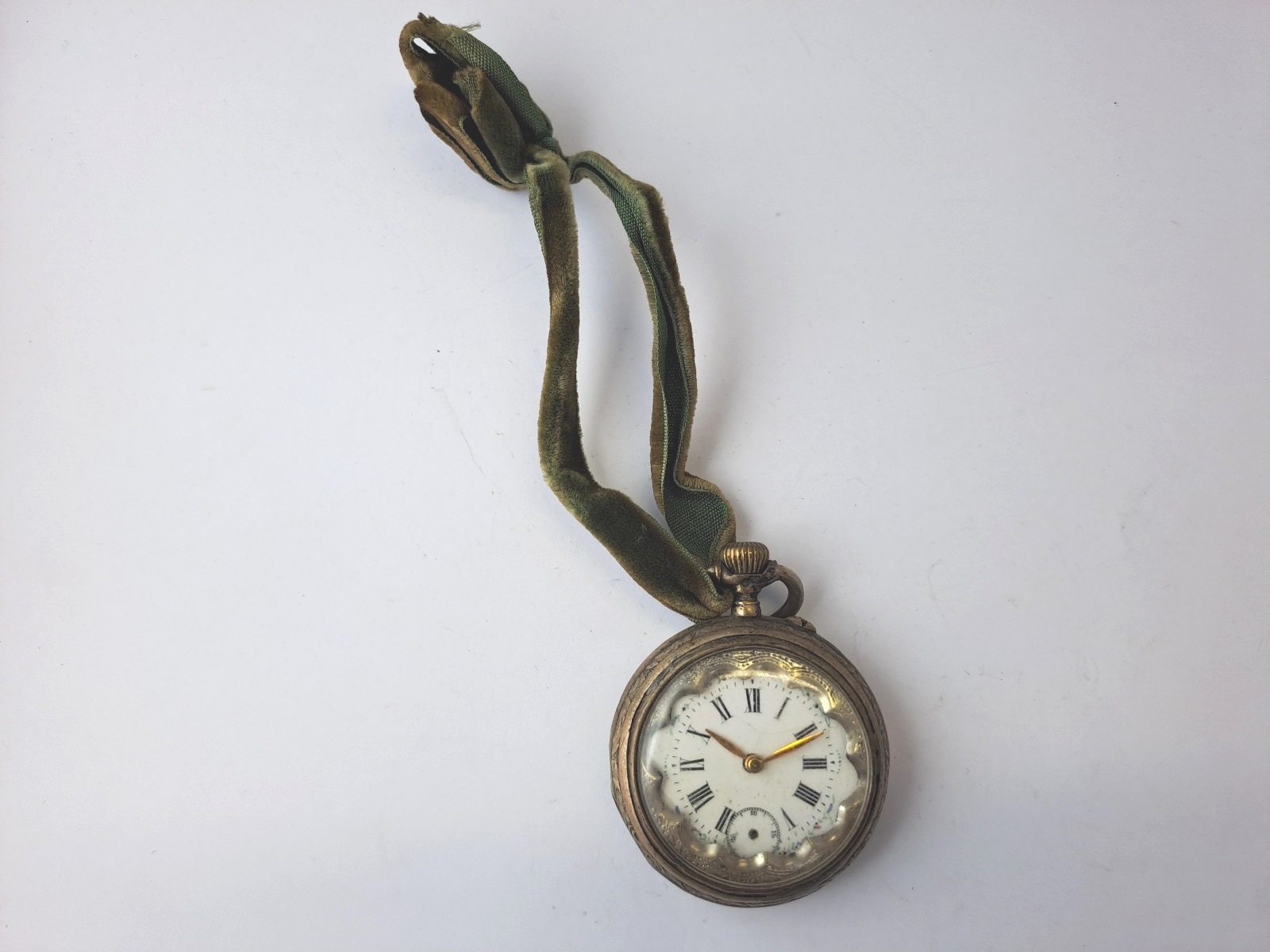 Emailziffernblatt, römische Stundenziffern, handbemalt, Kleine Sekunde-Zeiger fehlt, diverse Beschädigungen, Alters und Gebrauchsspuren, Service notwenig, S5