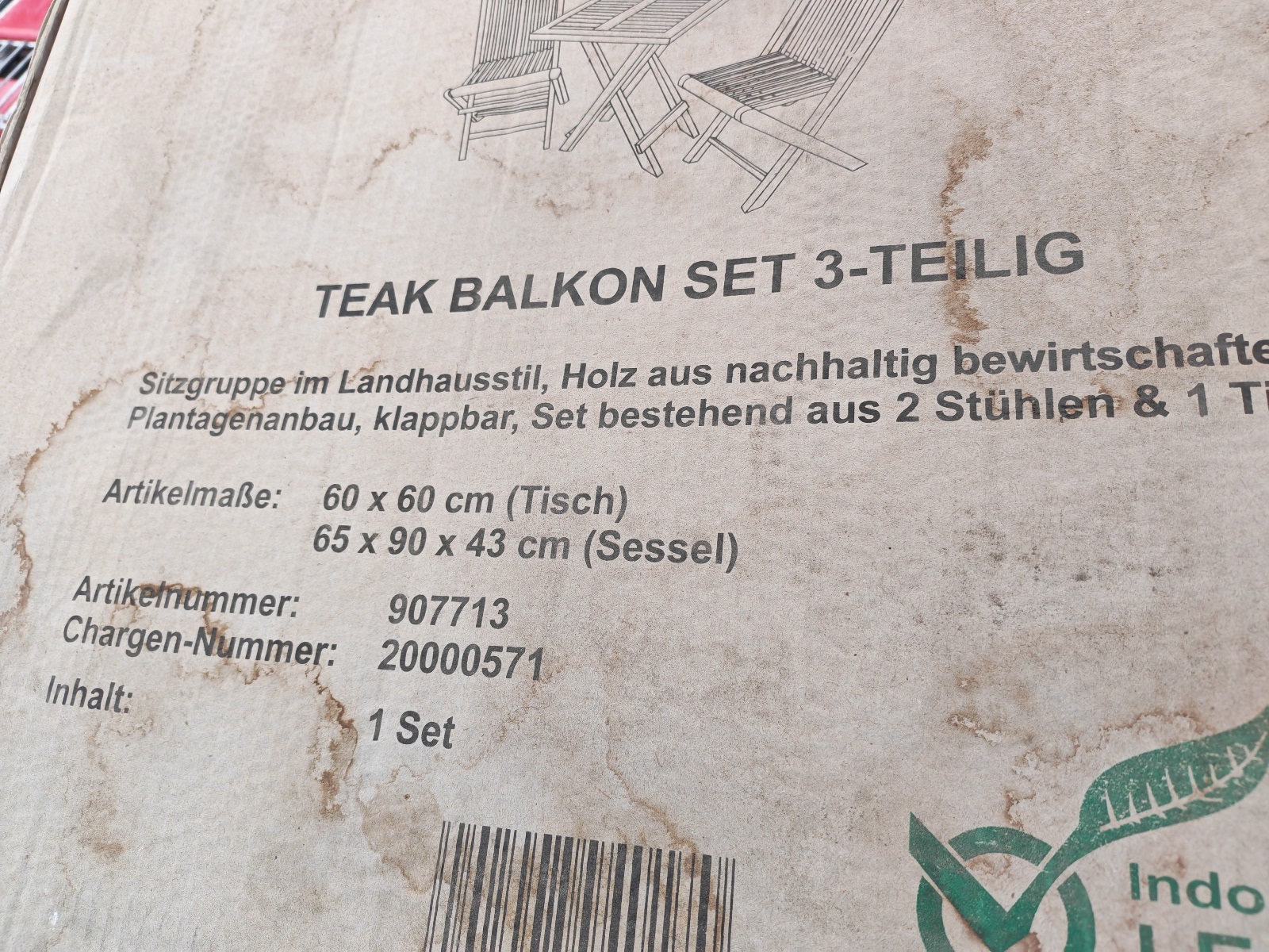 Set besteht aus einem Tisch ca. 60×60 cm und 2 Stühlen, neu, OVP