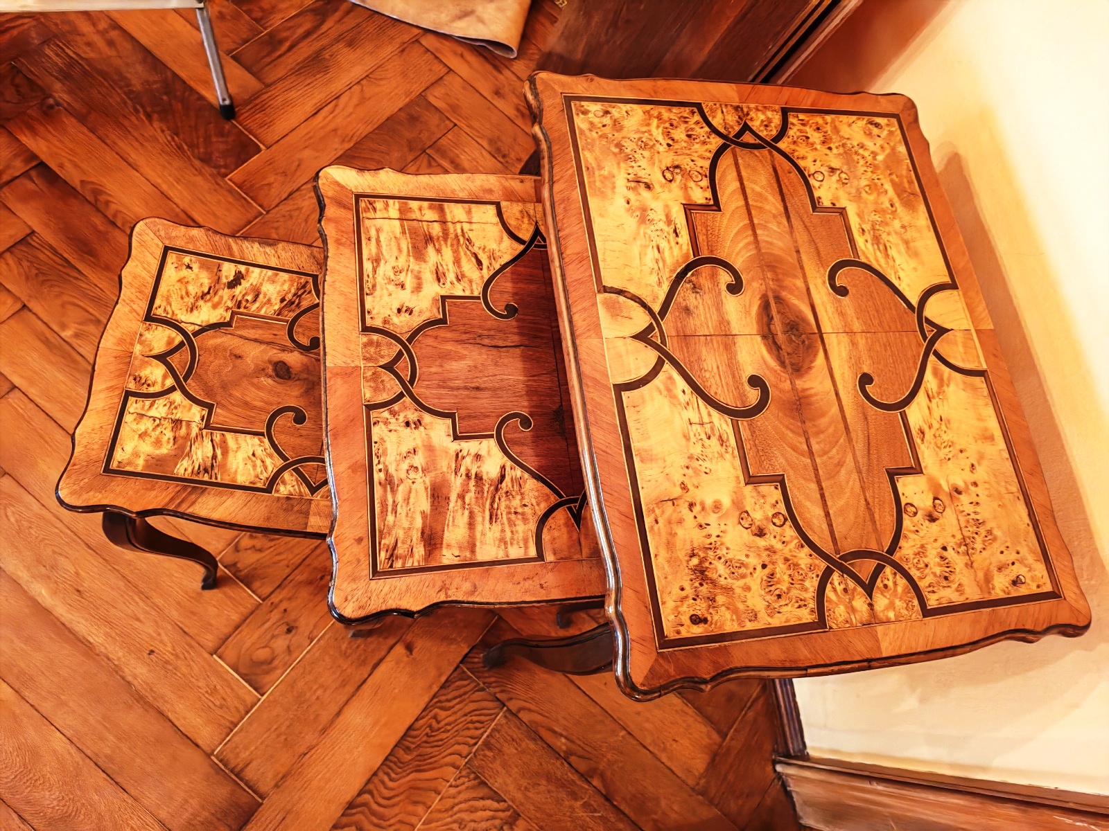 drei Tischchen, ineinander verschiebbar, größtes ca. 54x72x42 cm