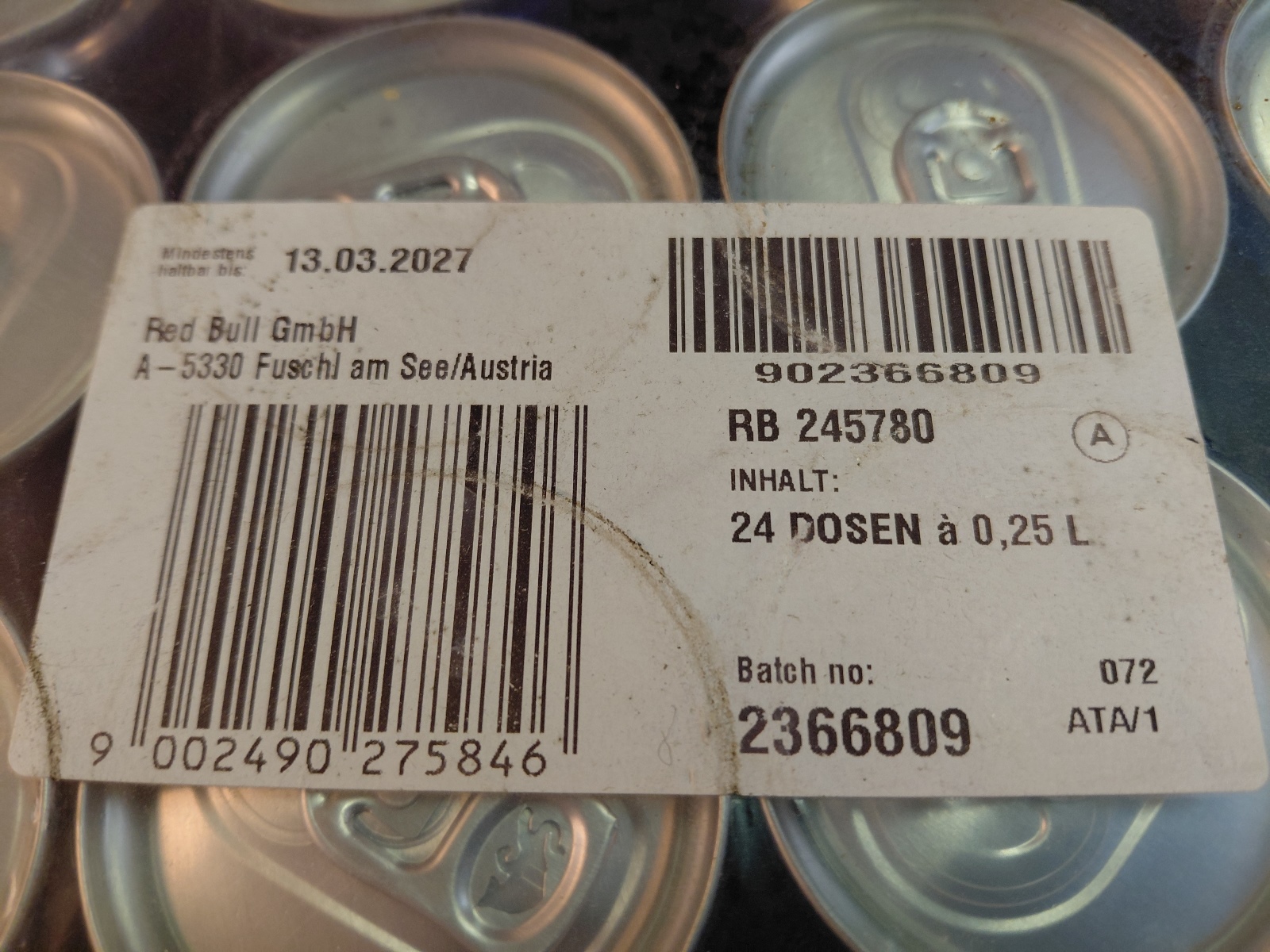 24 Dosen a 0,25 l MHD 13.03.2027 inkl. Pfandgebühr