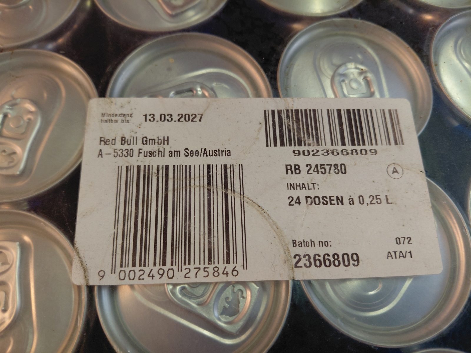24 Dosen a 0,25 l MHD 13.03.2027 inkl. Pfandgebühr